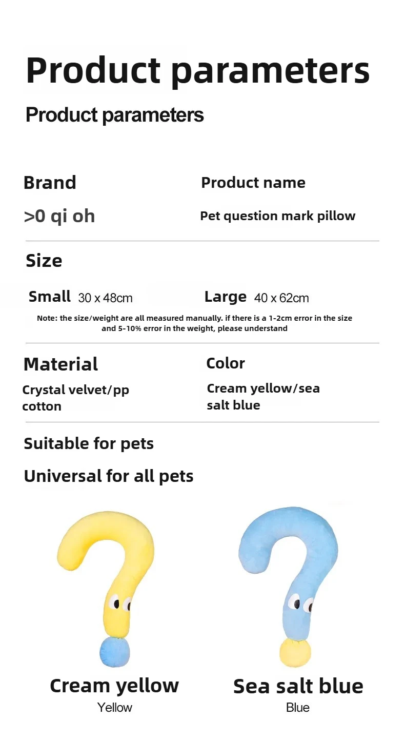 Nuevos almohadas para perros, signo de interrogación, cojín Universal para mascotas para las cuatro estaciones, almohada para el cuello, almohada pequeña para dormir para gatos, almohadas para mascotas, suministros para gatos