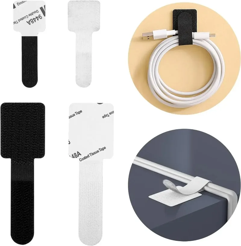 Hasta ahora, todo va bien. He colocado las piezas de velcro debajo de mi escritorio para sujetar cables pequeños. La parte cuadrada del producto cuenta con cinta adhesiva de doble cara, y la parte posterior tiene velcro, lo cual resulta muy práctico.