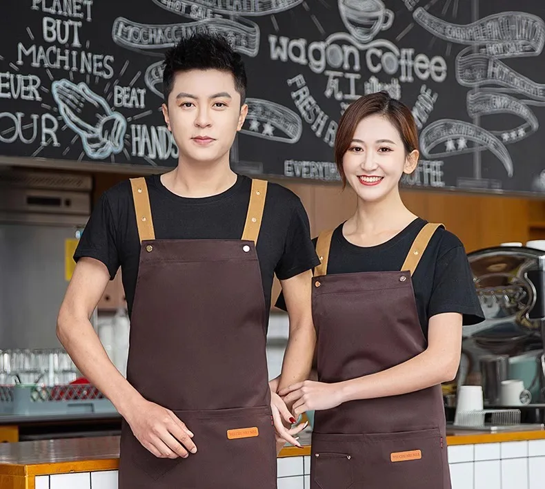 Nuevos delantales de cocina de moda para mujer y hombre, delantal de trabajo de Chef para parrilla, restaurante, Bar, tienda, cafeterías, uniforme de estudios de uñas de belleza