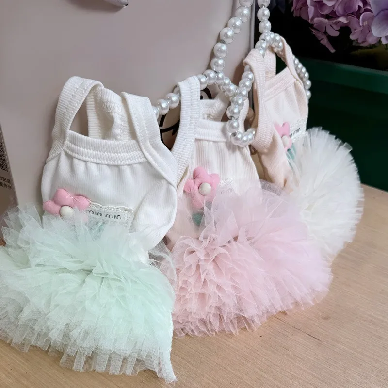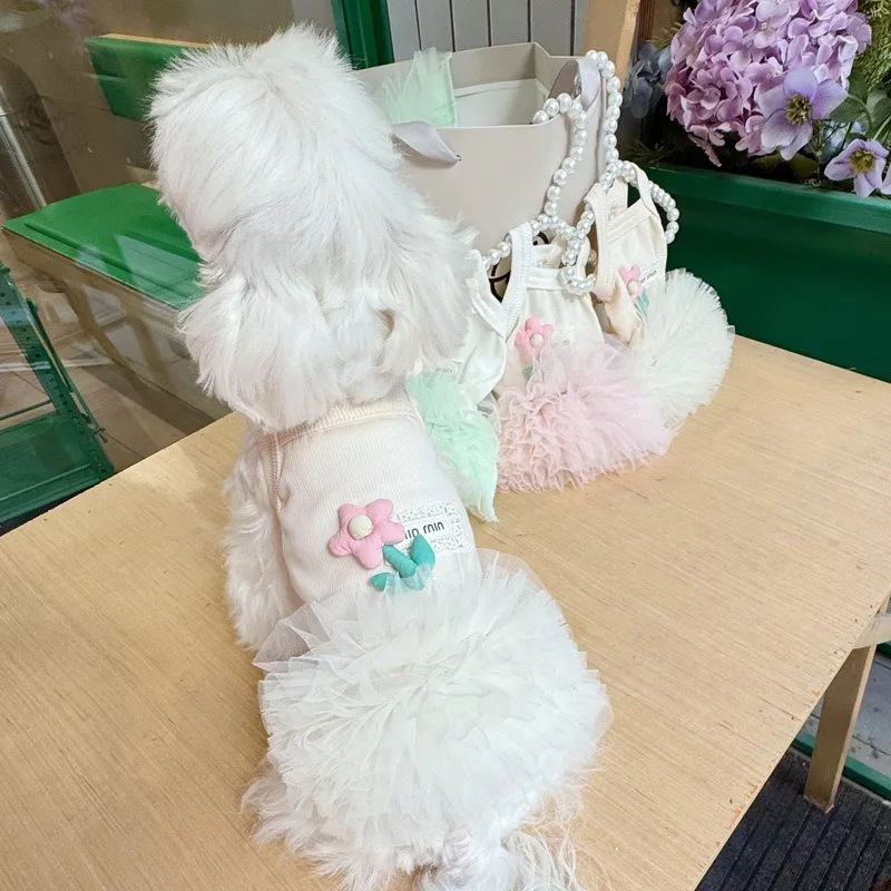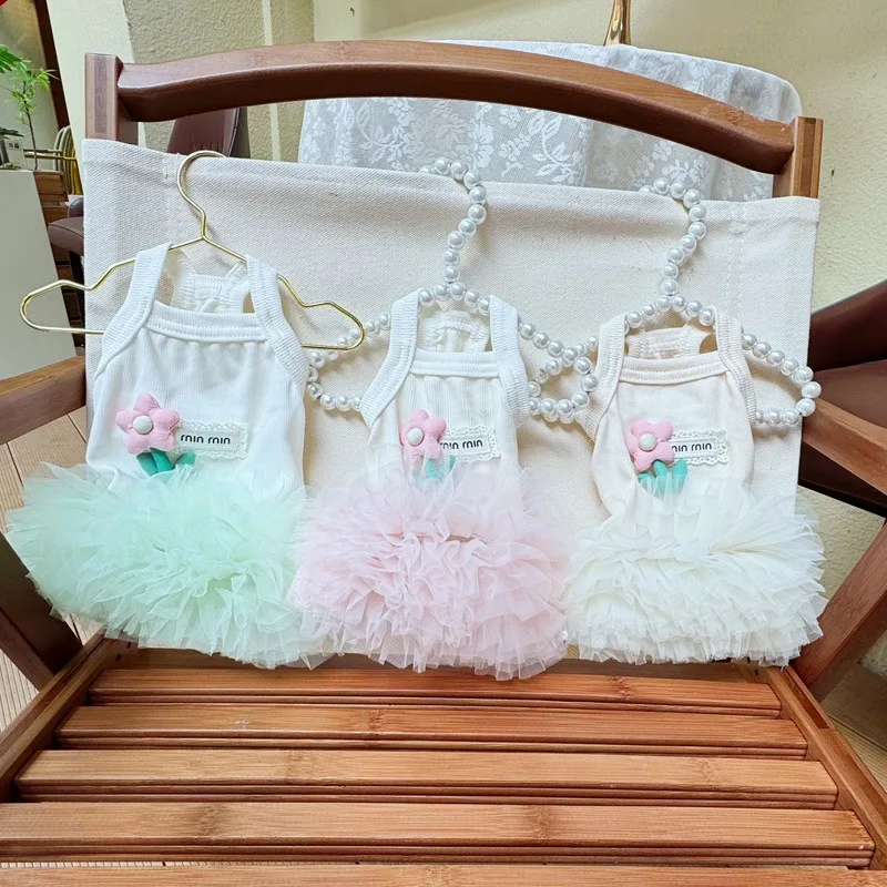 Nuevos vestidos de princesa para mascotas con flores para cachorros, falda acampanada con tirantes de malla, falda tutú de capa por capa, falda de peluche para perros, ropa para mascotas