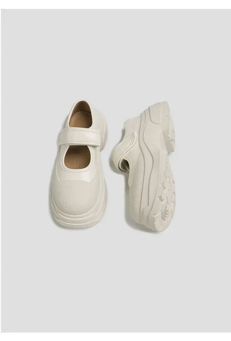 Nuevos zapatos de Ballet deportivos Mary Jane con tacón Thi para mujer, zapatos informales con punta redonda y tacón medio, suela de goma de Color puro