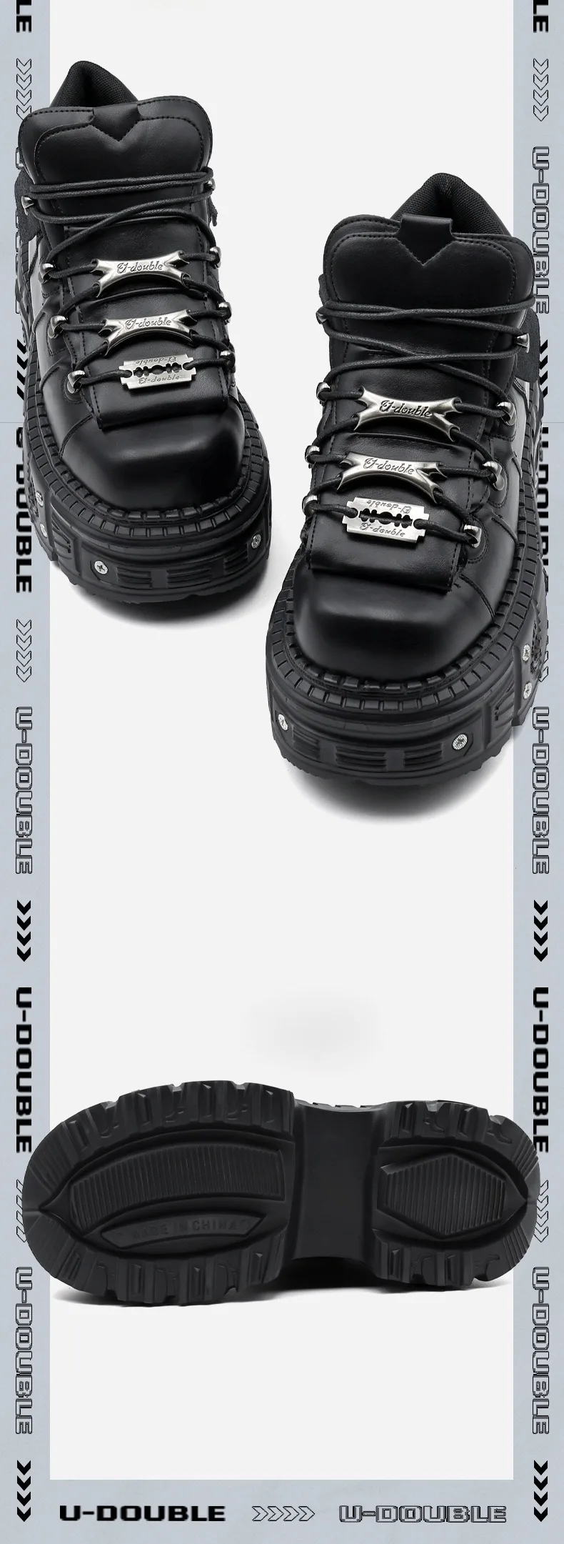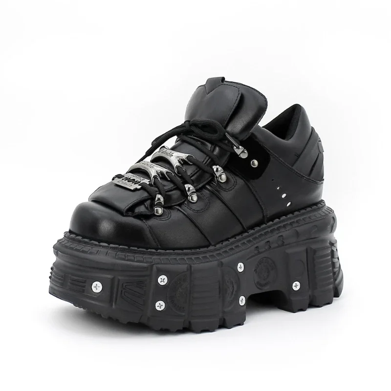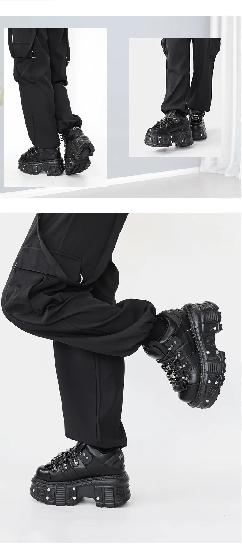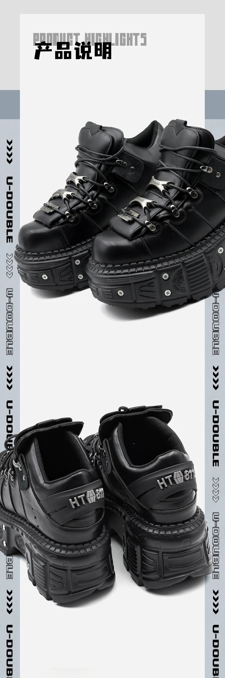 Nuevos zapatos de mujer estilo Punk con cordones altura del tacón 6CM zapatos de plataforma mujer gótico tobillo Rock botas decoración de Metal zapatillas de deporte para mujer