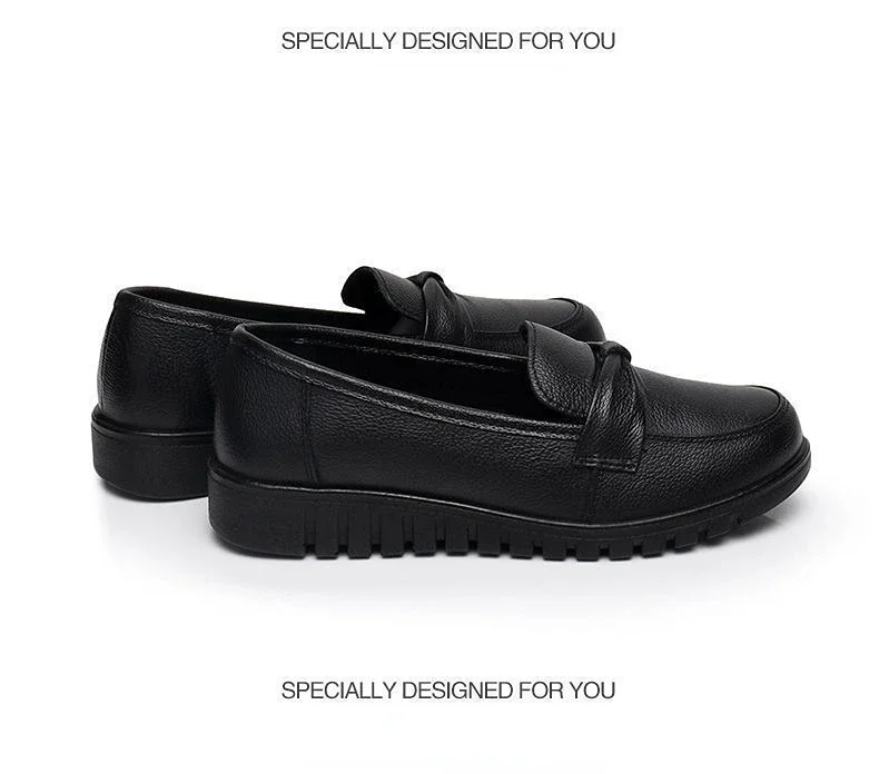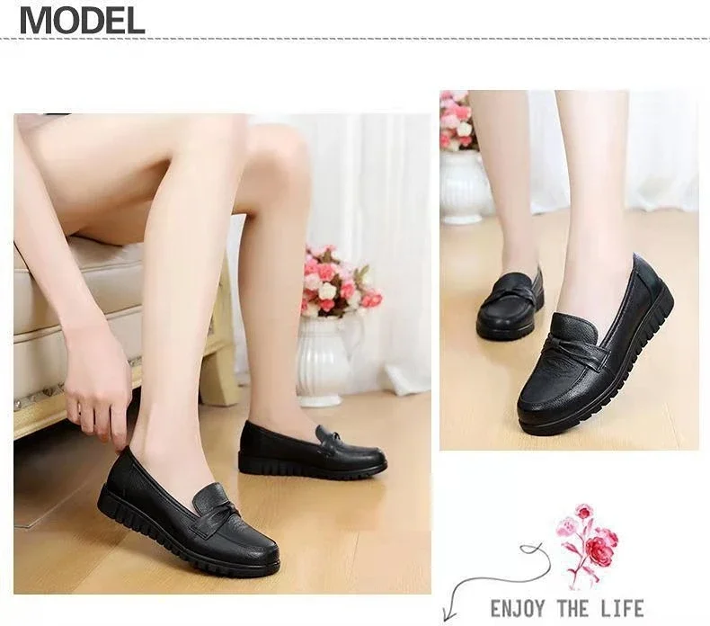 Nuevos Zapatos de Mujer de primavera, mocasines bajos con cabeza redonda, Zapatos de cuero suave impermeables, Zapatos casuales versátiles de Color sólido, Zapatos para Mujer