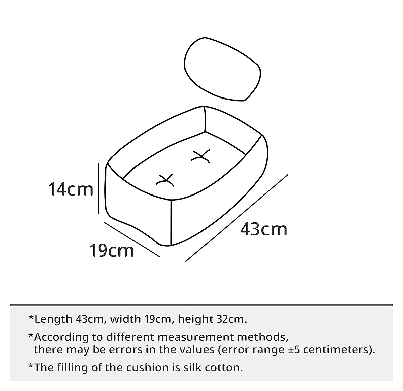 Colchón suave con almohada. Costuras de alta calidad. Ya estoy comprando un segundo (disponible en diferentes colores). Cabe perfectamente en una bolsa de transporte, súper cómodo para el perro, incluso duerme en él en casa. Se borra fácilmente.