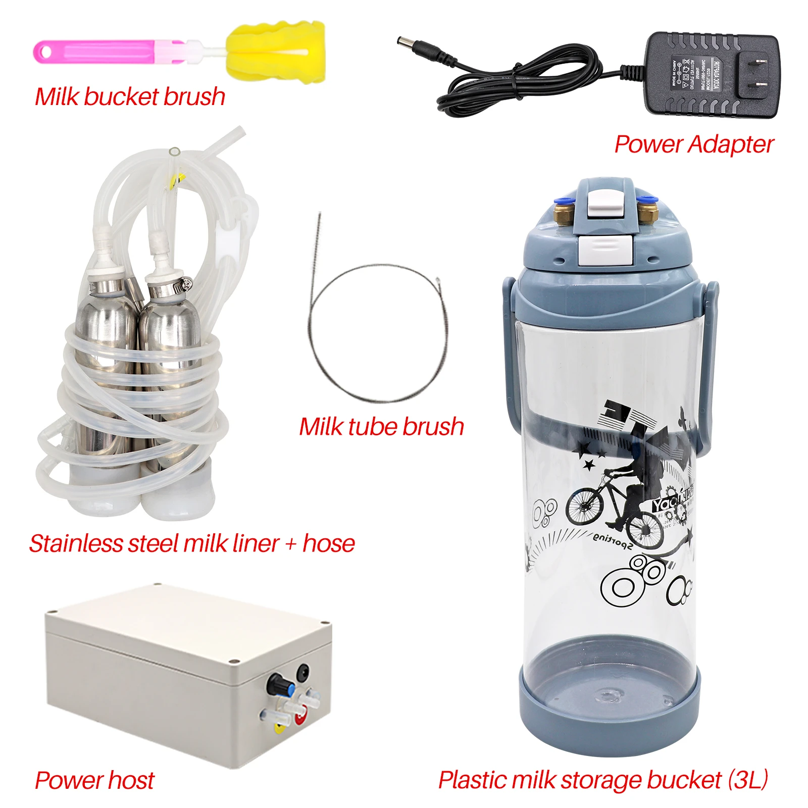 Ordeñadora con bomba de vacío automática, máquina de ordeño de doble cabeza con botella de plástico, 3L, pulso eléctrico