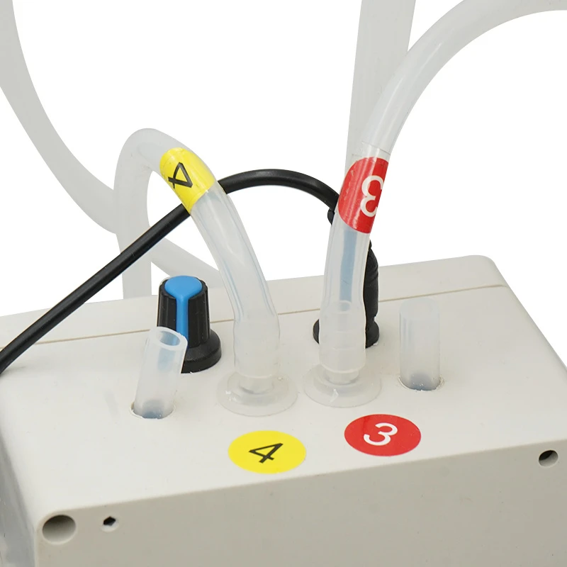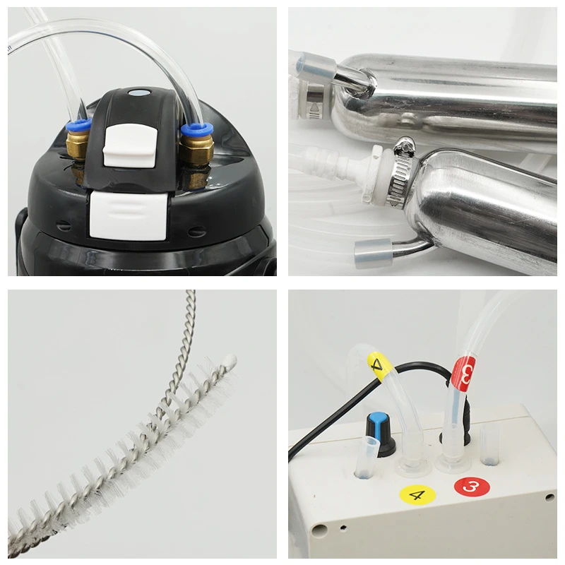 Características del producto -Conveniente uso simple, flexible y estable -Funcionamiento eléctrico, ahorra tiempo y es más eficiente -Operación simple y buen mantenimiento, sin necesidad de leche manual -Perfecto para su uso en granjas pequeñas y medianas o uso diario en el hogar -Fácil uso, simplemente conéctelo después de la instalación y el motor hará todo el trabajo. -Ordeño suave, no daña la tetilla de cabra/vaca, ayuda a mejorar las condiciones de salud del ordeño -Adopta un temporizador para controlar la bomba, que funciona como un pulsador, ayuda a mejorar la producción de ordeño -Con un pulso, adopta un temporizador para controlar la bomba, ayuda a mejorar la función pulsante de producción de ordeño hace que las vacas y las ovejas sean menos propensas a la inflamación