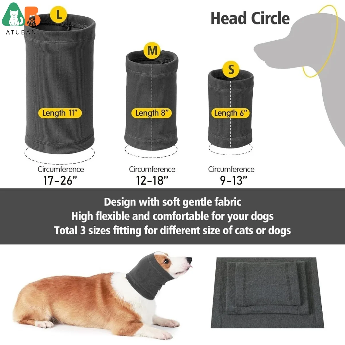 Envoltura reductora de ruido: sin solapa para perros adopta un diseño completamente envuelto con compresión suave, que ayuda a reducir el ruido, protege los oídos y tiene un efecto envolvente que proporciona una sensación de seguridad, la envoltura para la cabeza del perro calmará eficazmente las mascotas propensas a la emoción y la ansiedad al salir de casa, y estos oídos tranquilos para perros mantienen a su mascota tranquila de ambientes ruidosos como automóviles, aeropuertos, ruidos, truenos y fuegos artificiales.