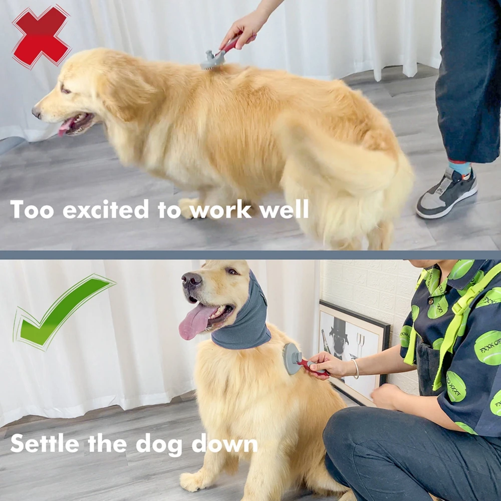 Regalo perfecto para sus mascotas: Esta capucha protectora para los oídos para perros es adecuada para usar en el Salón de peluquería de mascotas al bañarse, soplar, cepillar, reparar las uñas, puede reducir el ruido, calma a tus perros cuando haya truenos, huracanes o toques repentinos de extraños.