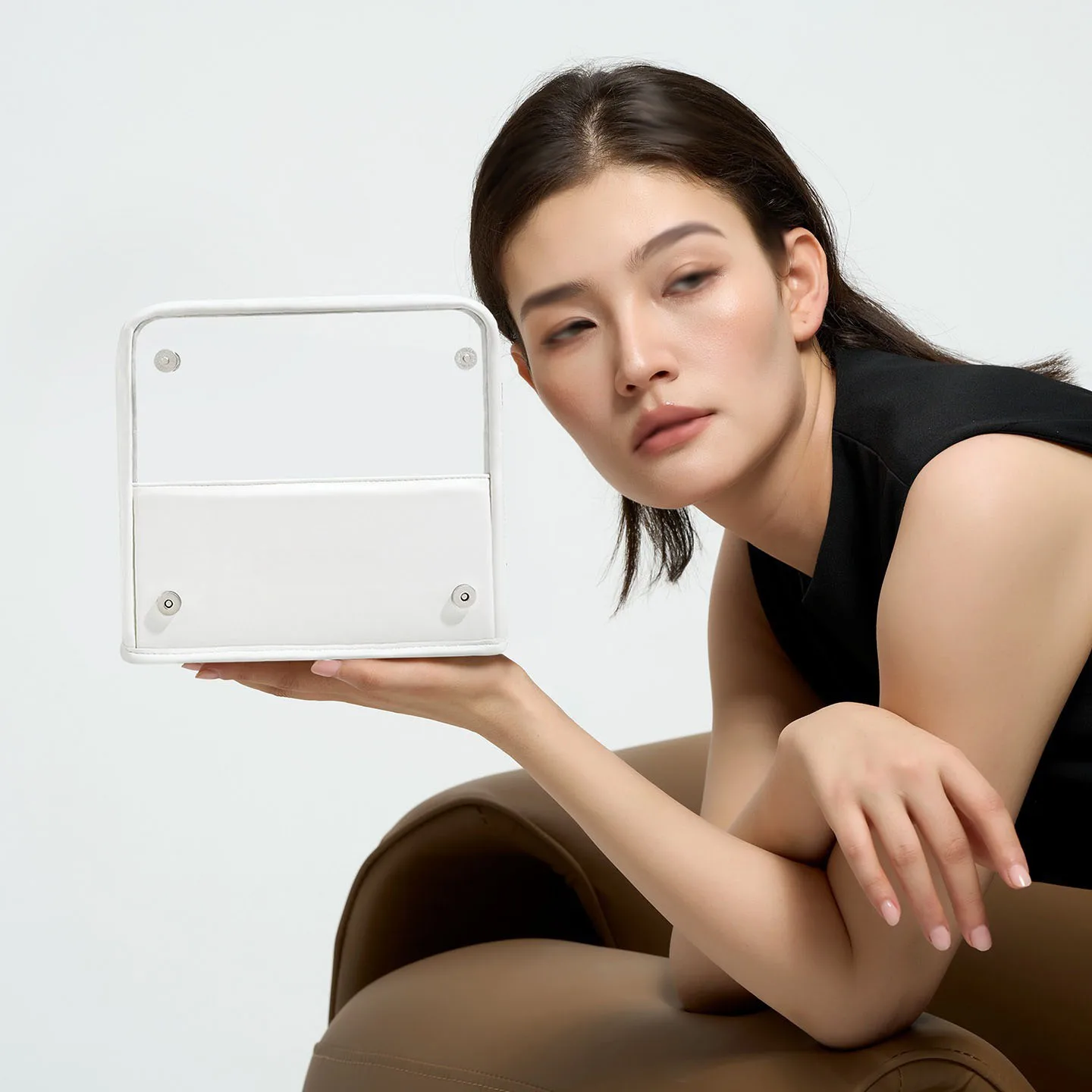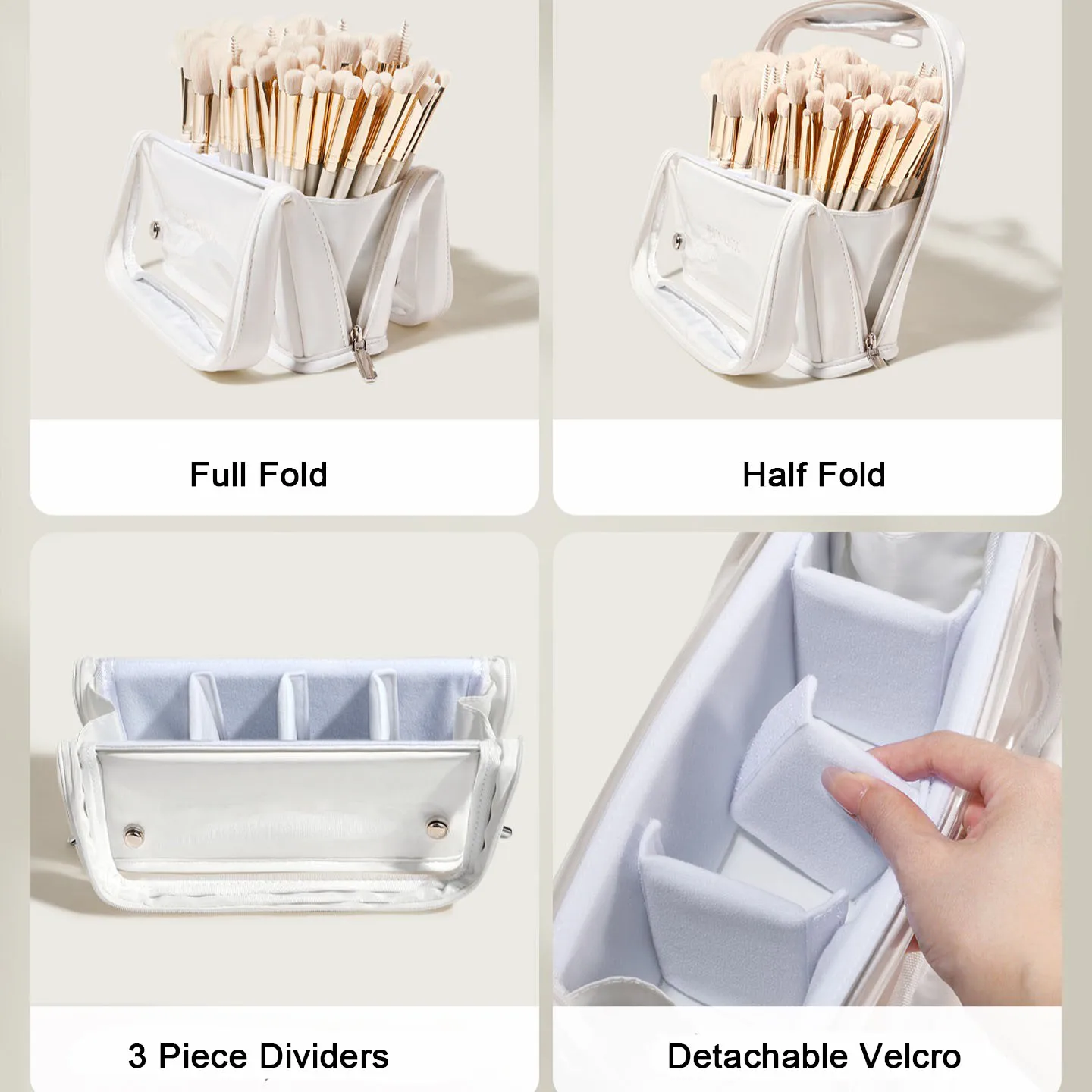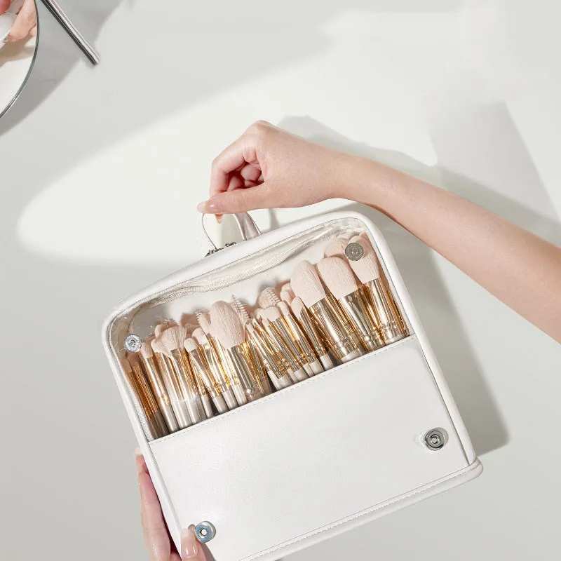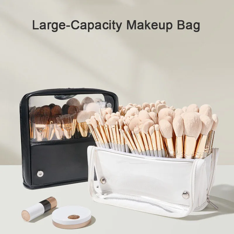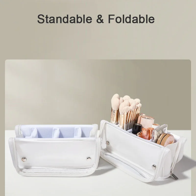 Organizador de brochas de maquillaje transparente plegable, bolsa de almacenamiento de cosméticos de gran capacidad con diseño de pie, estuche de cosméticos de viaje portátil