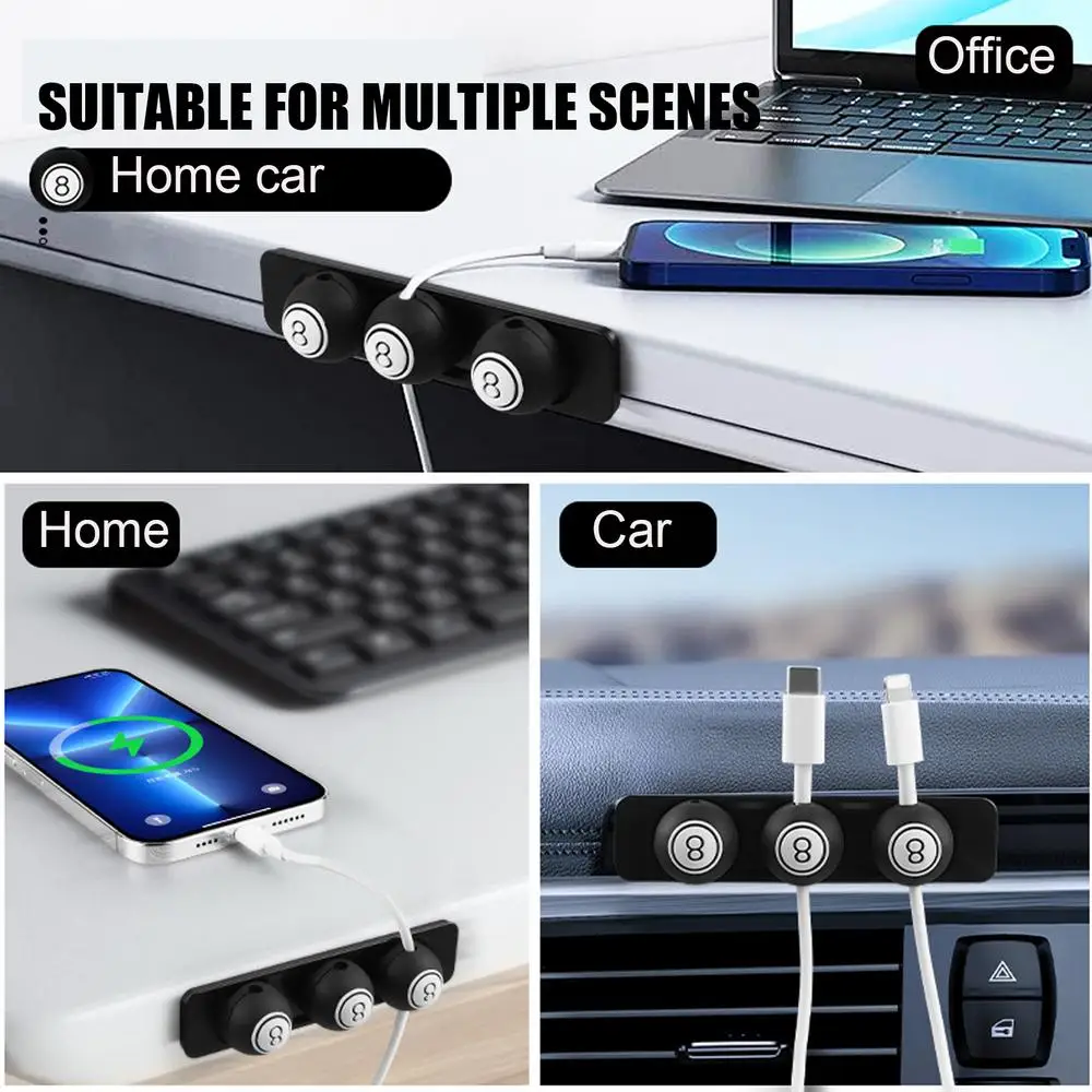 Una solución multifuncional para la gestión de cables, estos clips magnéticos cuentan con tres orificios y un diseño extraíble.La forma de billar garantiza que los cables se mantengan organizados y al mismo tiempo agrega un toque moderno a la mesita de noche, la cocina o el dormitorio.Perfecto para el lugar de trabajo o el hogar, este soporte simplifica el control del cable de manera efectiva.