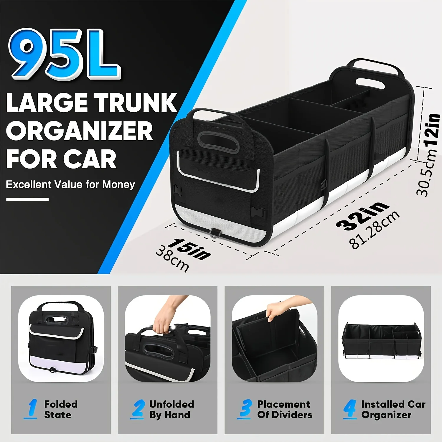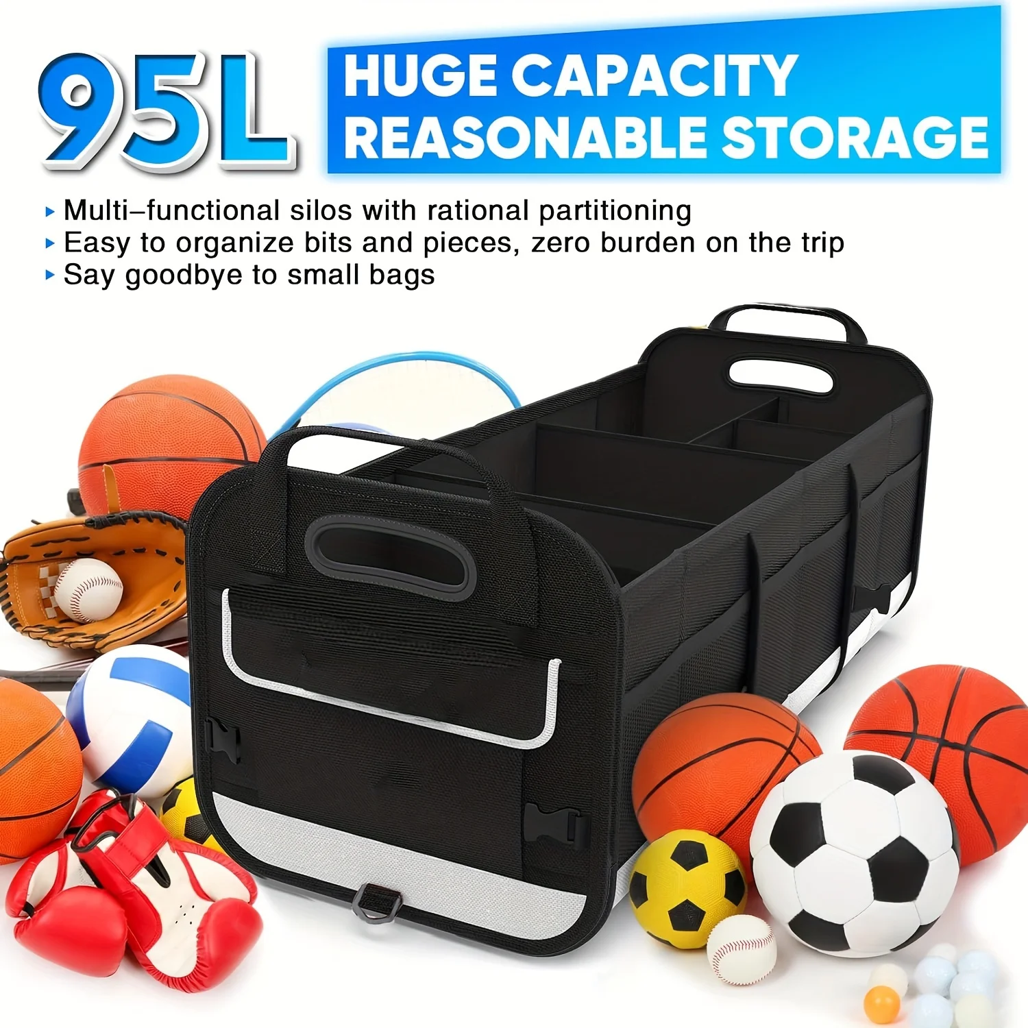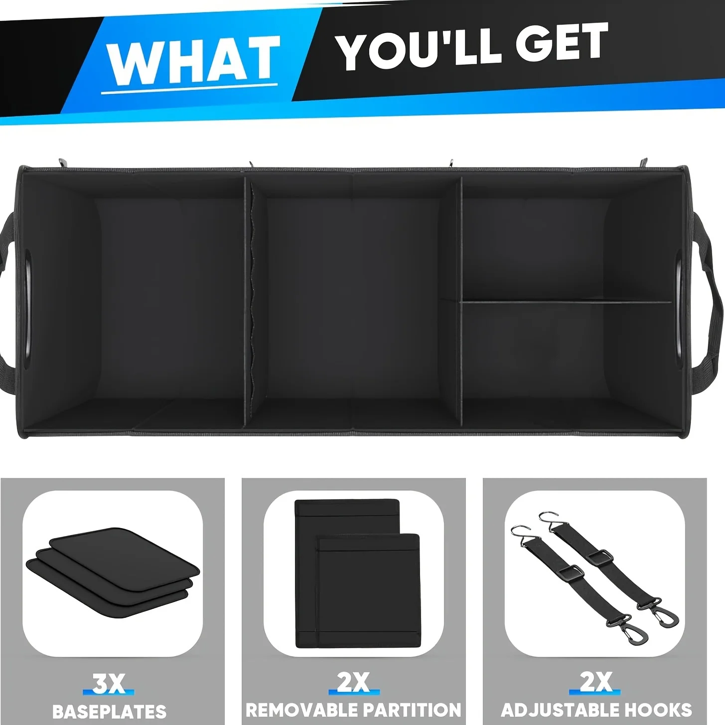 Organizador de maletero de coche grande con 5 compartimentos, organizadores de maletero y almacenamiento de coche, mango reforzado para SUV, correas de seguridad, Orga de maletero