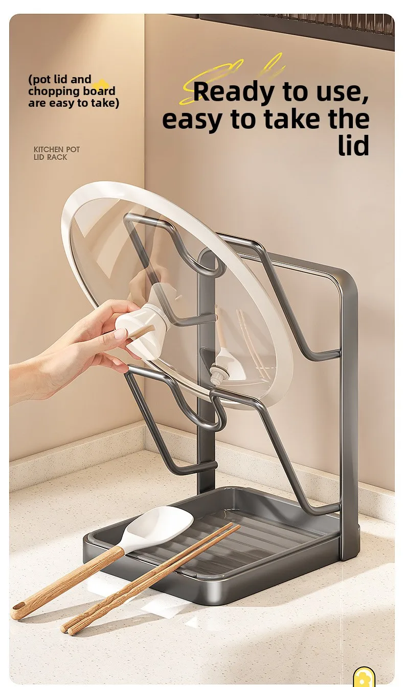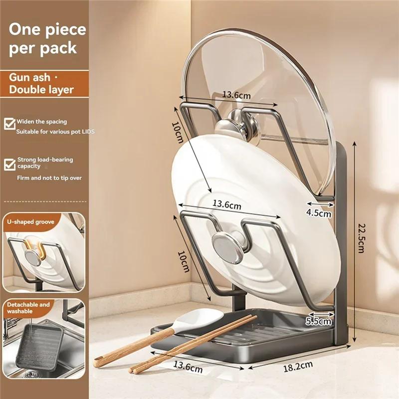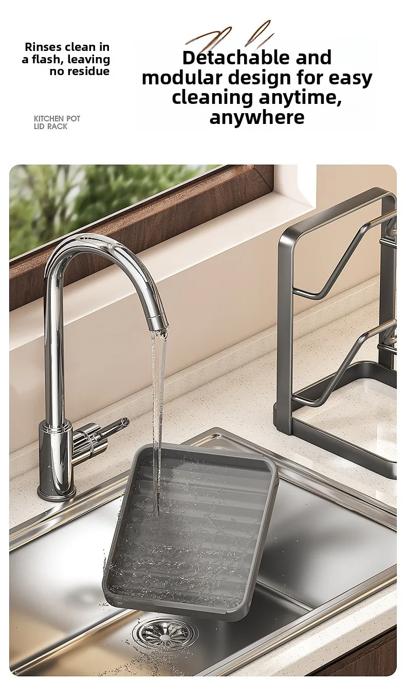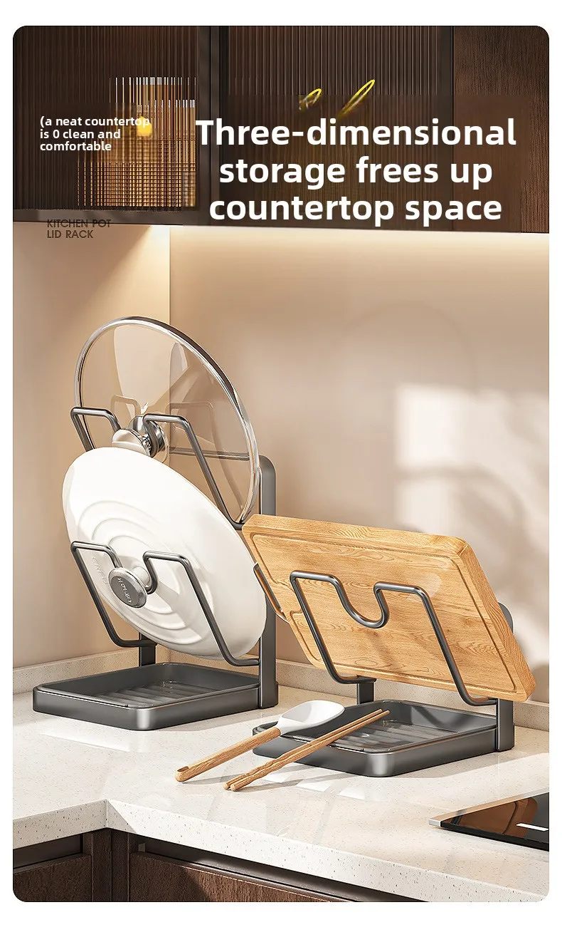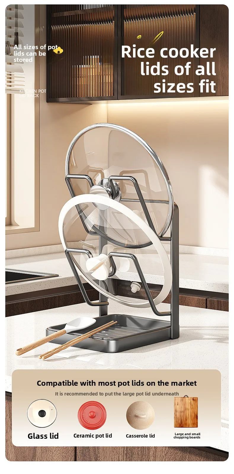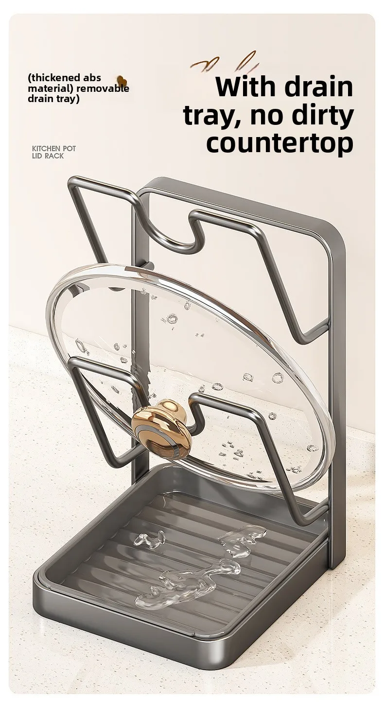 Organizador de tapa de olla de montaje en pared sin taladro, estante de cocina, estante de secado, almacenamiento funcional multifuncional, ahorro de espacio, estante para tapa de olla de cocina