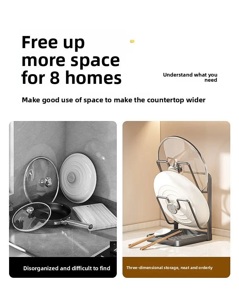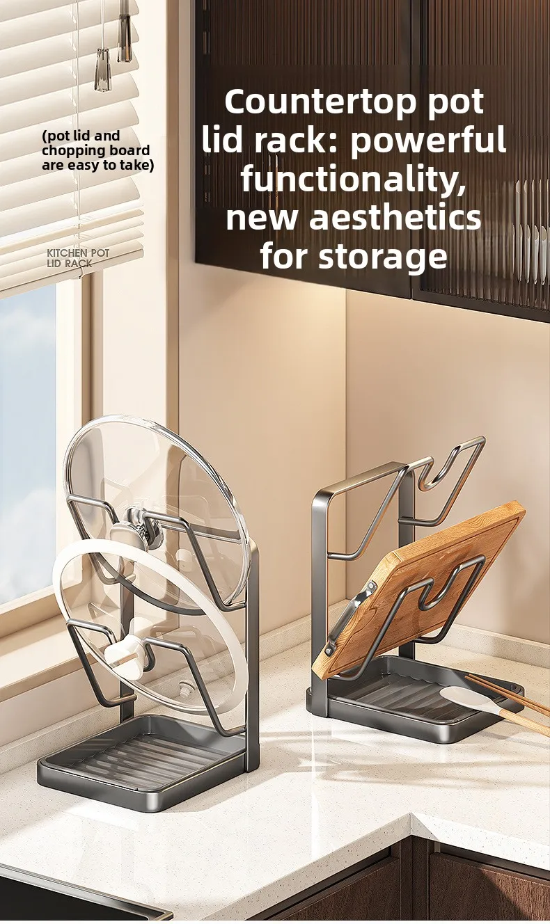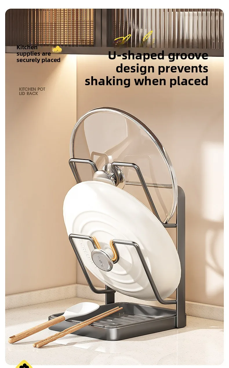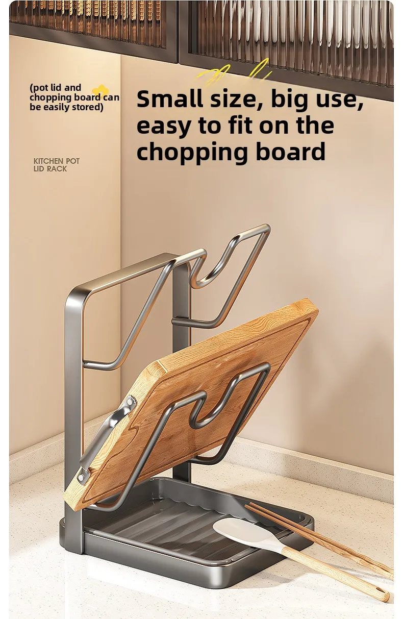 Optimice la utilización del espacio: este estante de cocina multifuncional puede contener tapas de ollas y servir como soporte para tabla de cortar, maximizando el espacio en la encimera.Bandeja de drenaje integrada: equipada con una bandeja de drenaje incorporada, puede recoger agua residual de las tapas lavadas o tablas de cortar, manteniendo la encimera seca y limpia.Estructura de metal duradera: este estante para tapas de ollas está hecho de metal de alta calidad, lo que ofrece durabilidad duradera y resistencia al óxido.Fácil mantenimiento: la superficie metálica lisa simplifica la limpieza; simplemente límpielo con un paño húmedo para mantener su apariencia original.Este estante de cocina multifuncional es perfecto para organizar tapas de ollas y tablas de cortar, mejorando la funcionalidad y el estilo de su cocina.Su diseño moderno complementa cualquier decoración y la bandeja de drenaje integrada garantiza un espacio de trabajo ordenado.Hecho de metal duradero, puede soportar el uso diario y es fácil de limpiar, lo que lo convierte en un complemento esencial para su cocina.Color: Gris Material: acero Contenido del paquete: 1x rejilla para tapa de olla Este paquete solo contiene los artículos anteriores y no incluye ningún otro producto. Tenga en cuenta que debido al reflejo de la luz y a las diferentes pantallas, el color de los elementos de las imágenes puede diferir ligeramente del real. La tolerancia de medición es de +/- 1-3 cm.