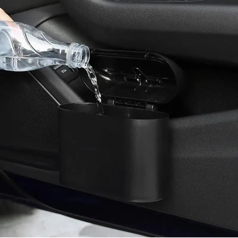 Cubo de basura tipo concha para coche, caja de almacenamiento para polvo de basura para vehículo colgante, cubo de basura de presión cuadrado ABS negro, organizador Universal
