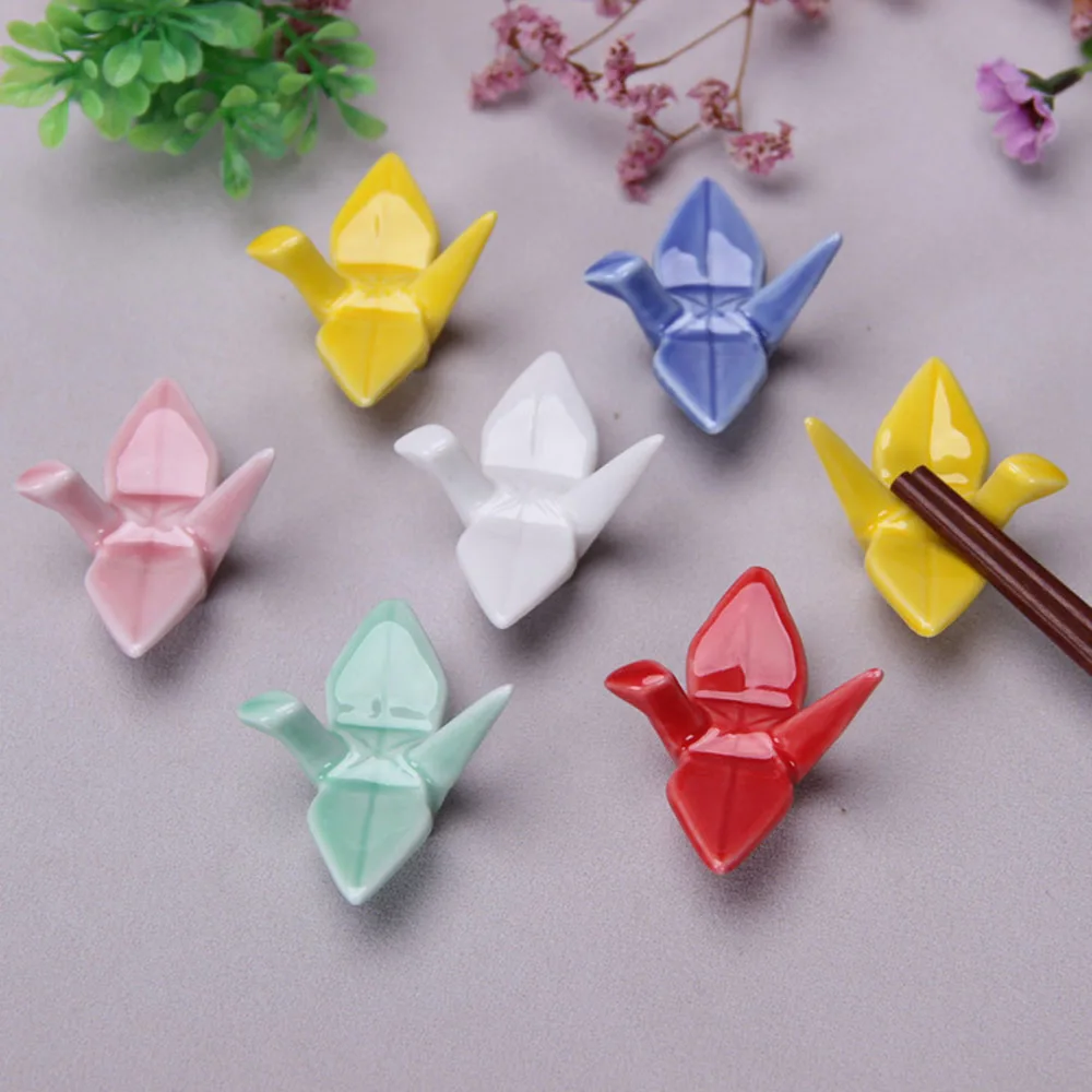 Origami Crane - Reposapiés de palillos de cerámica con forma, adorables detalles de mesa, imprescindibles para la cocina