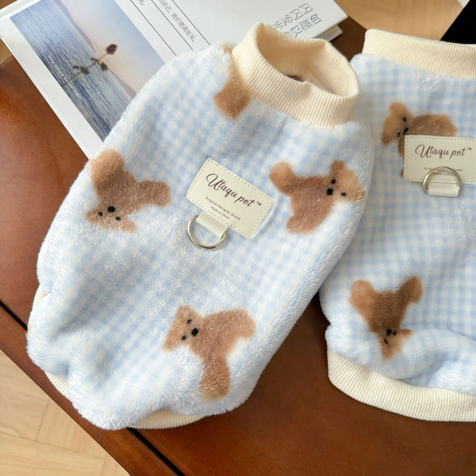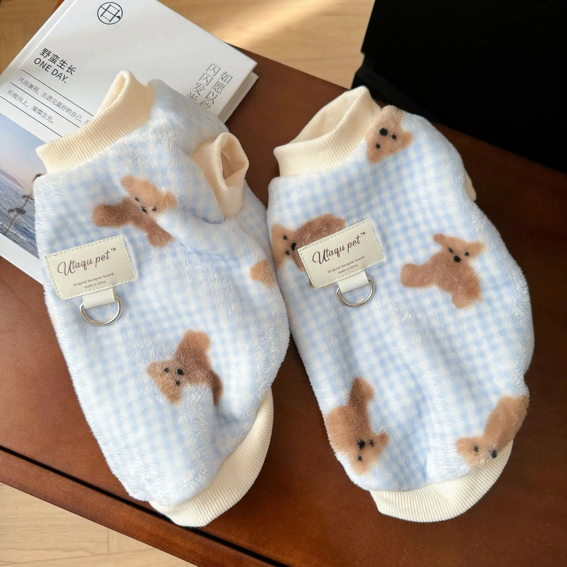 Oso de peluche a cuadros para otoño e invierno, chaleco de felpa de doble cara para perro, chaqueta de lana cálida, ropa para cachorros