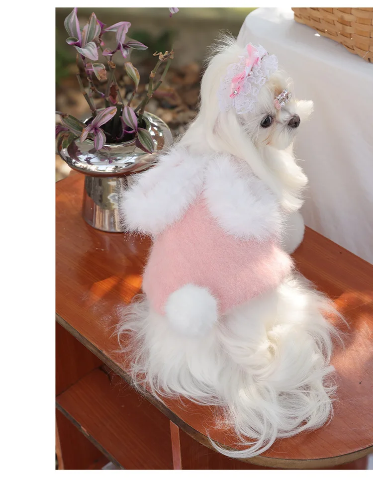 Otoño e Invierno lindo conejo mascota abrigo de felpa perro pequeño y mediano felpa gruesa Bichon ropa para cachorros para perros pequeños