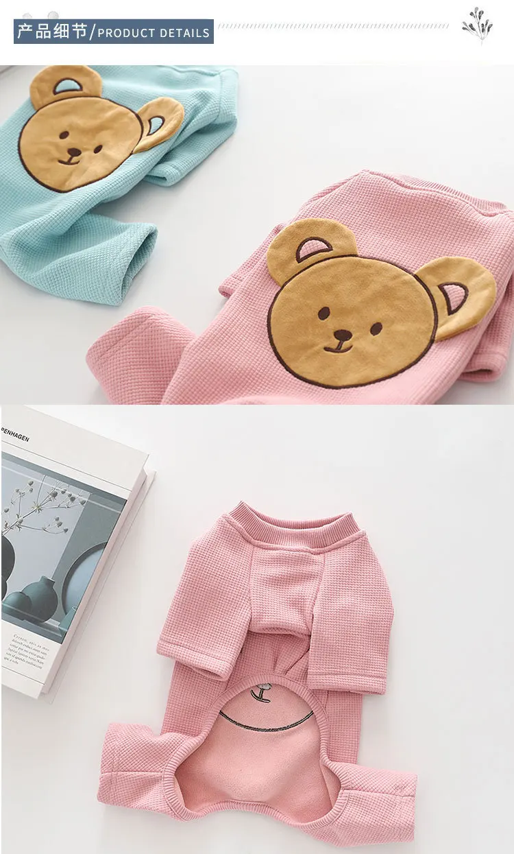 Otoño e Invierno mascota oso de peluche a cuadros mono para perro de cuatro patas abrigo Base de cuatro patas para mascota oso de peluche ropa para perros pequeños pijamas