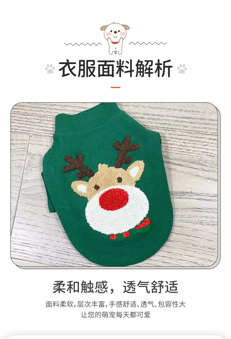 Otoño e Invierno suéter de cuello alto estilo navideño Reno tejido ropa para perros oso de peluche Otoño Invierno ropa para gatos camisa Base