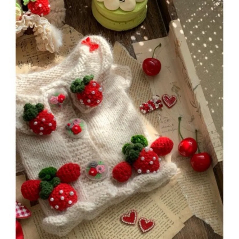 Otoño e Invierno suéter de punto de fresa Teddy Schnauzer suéter para perros pequeños para mascotas chaleco ropa para cachorros para perros pequeños