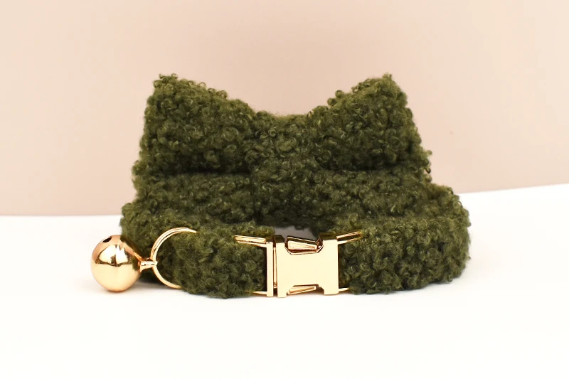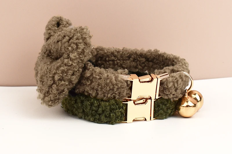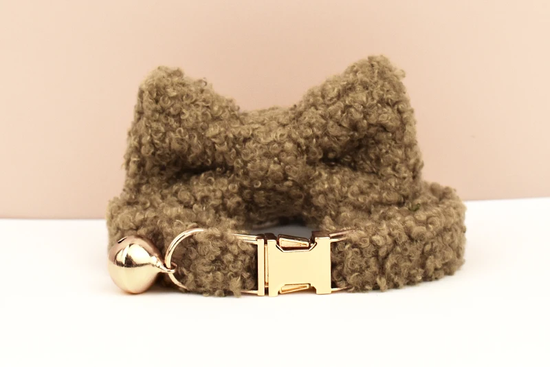 Collar de gato de piel de peluche de otoño e invierno, accesorios de campana, accesorios de cuello de gatito se pueden personalizar con letras láser