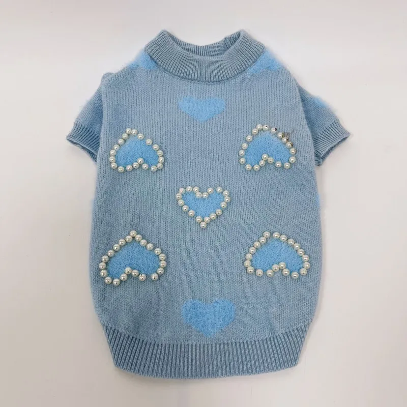 Otoño Invierno amor perla suéter perro tejido Sudadera con capucha Top compartido oso Schnauzer ropa de tamaño pequeño mediano ropa para cachorros