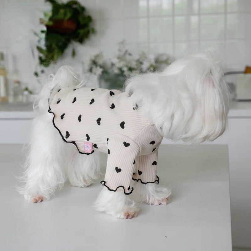 Excelente calidad, tela de algodón gruesa, el cuello es un poco largo para nosotros, se enrolla solo. ¡Mi perro se ha vuelto aún más encantador y adorable con este conjunto! 🤗🥰
