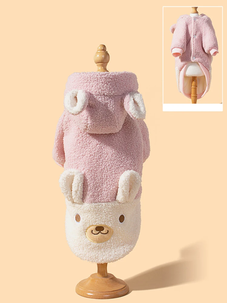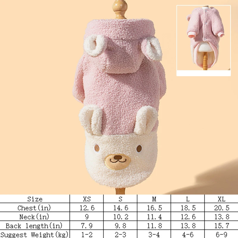 Otoño e Invierno antideslizante lindo oso con capucha abrigo de algodón hurón ropa para mascotas ropa suave y cómoda para perros