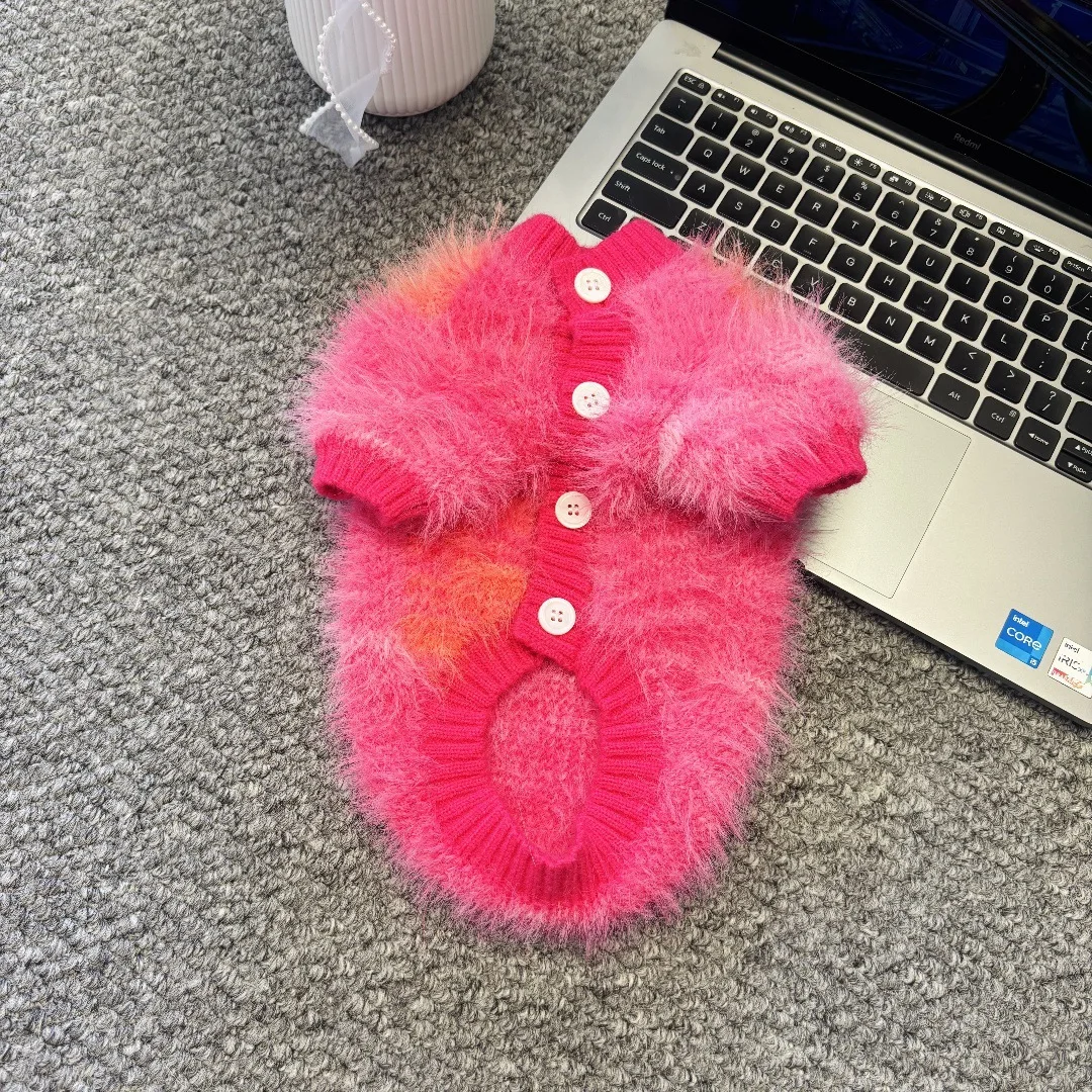 Otoño e Invierno cálido suéter para mascotas cárdigan de punto de felpa gato Schnauzer abrigo de peluche ropa para perros pequeños