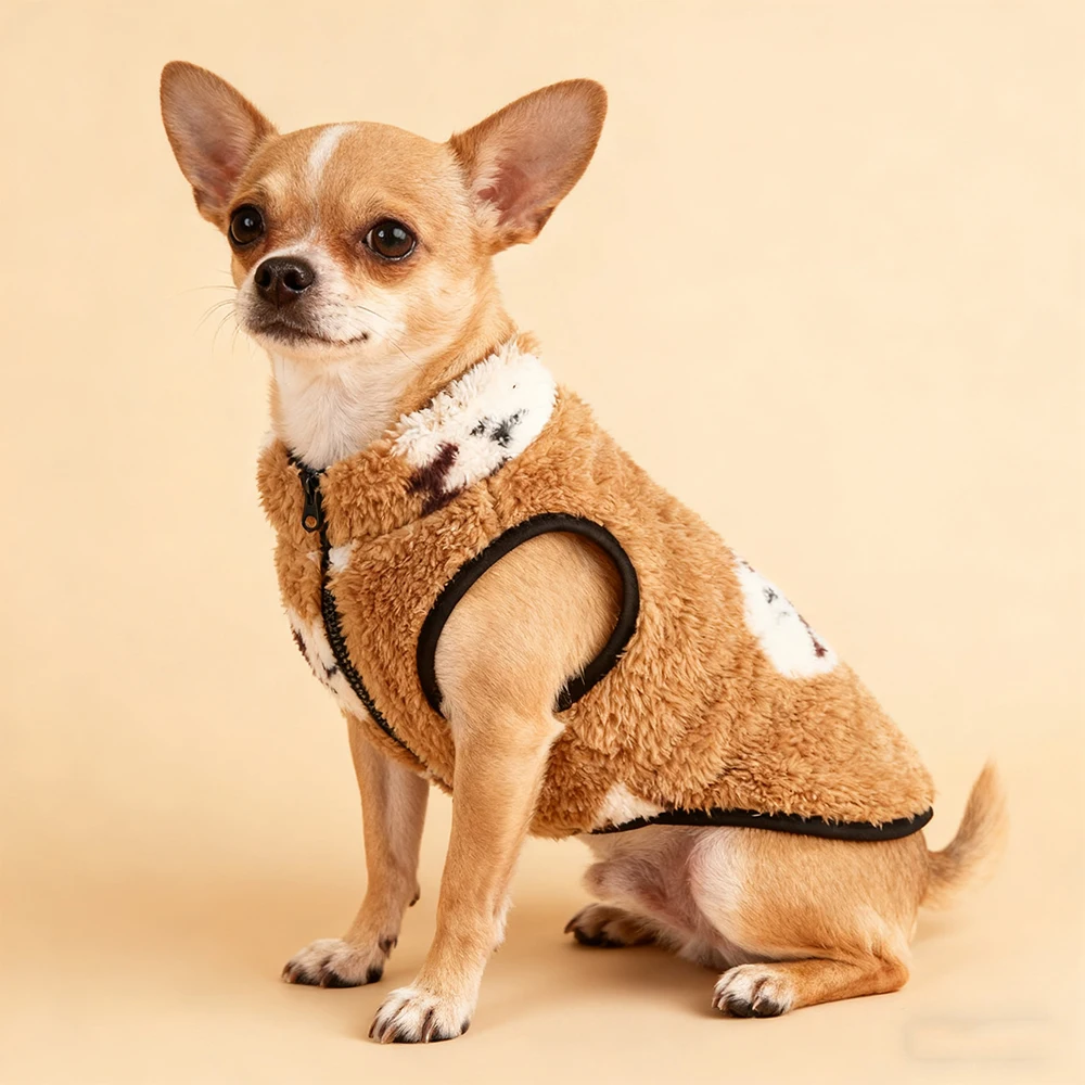 Confeccionado con poliéster suave, este chaleco tipo chaqueta brinda comodidad y calidez para su amigo peludo durante el otoño y el invierno.