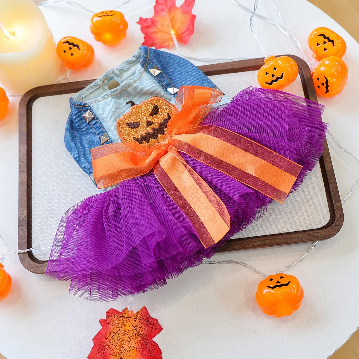Otoño e Invierno Halloween mascota vestido de empalme de malla ropa de gato falda de calabaza vestidos para perros pequeños