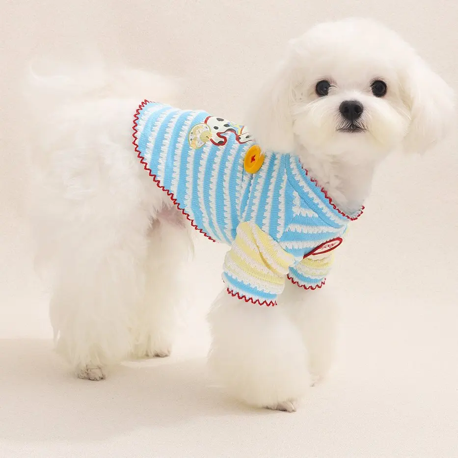 Otoño Invierno mascota camisa inferior a rayas Waffle dos piernas ropa lindo cálido que oso Teddy cálido gato Top ropa para cachorros