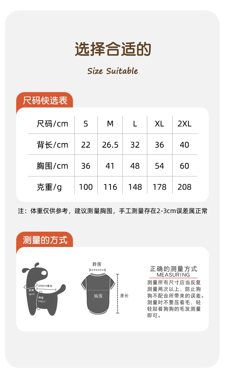 Información sobre el tamaño (CM) S Pecho 36 Espalda 22 M Busto 41 Longitud de la espalda 26,5 L Busto 48 Longitud de espalda 32 XL Busto 54 Longitud de espalda 36 XXL Busto 60 Longitud de espalda 40 Nota: Debido a los diferentes métodos de medición, la unidad de medida plana y auxiliar CM tiene un error de 2-3 CM, que está dentro del rango normal.