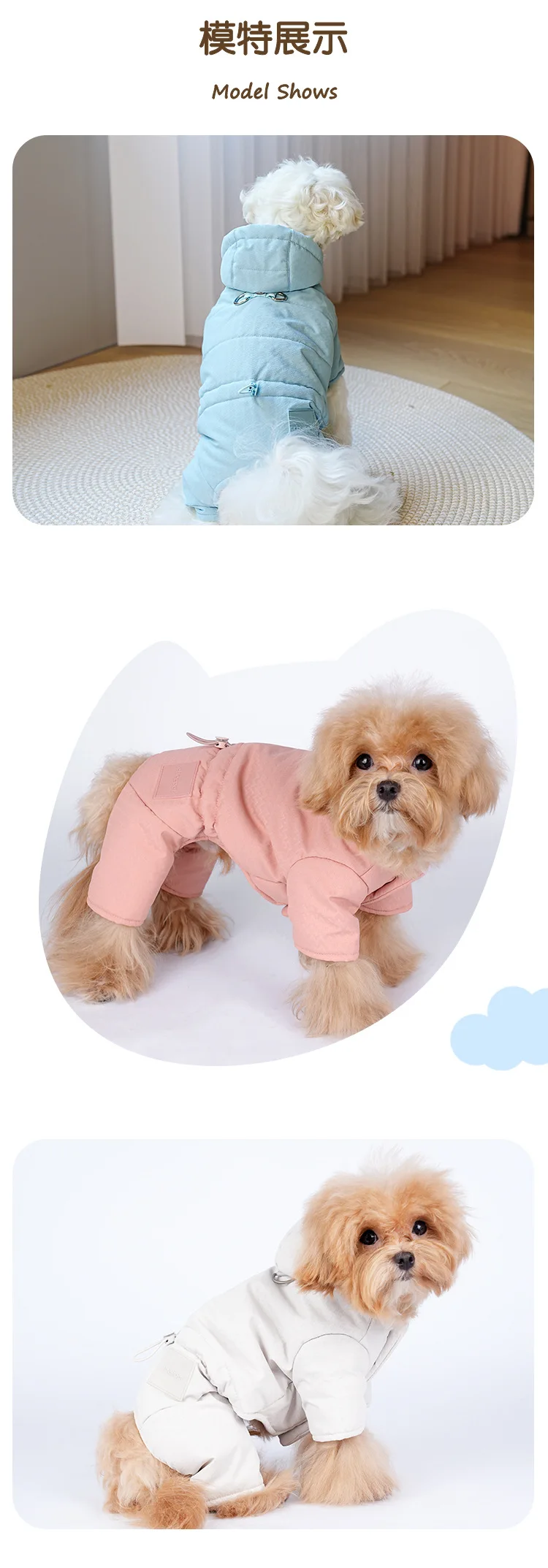 Otoño Invierno mascota chaqueta con capucha de cuatro patas mono Teddy Parkas para perros pequeños desgastados con ropa gruesa para mascotas ropa para cachorros