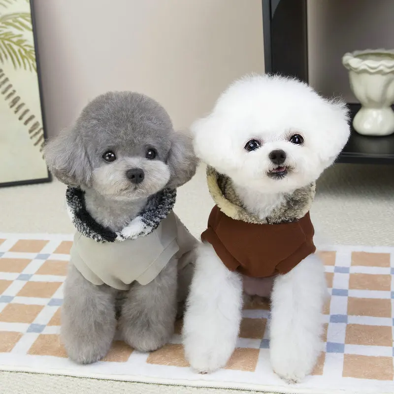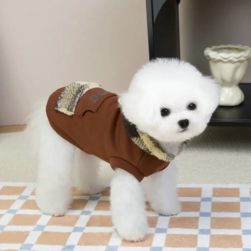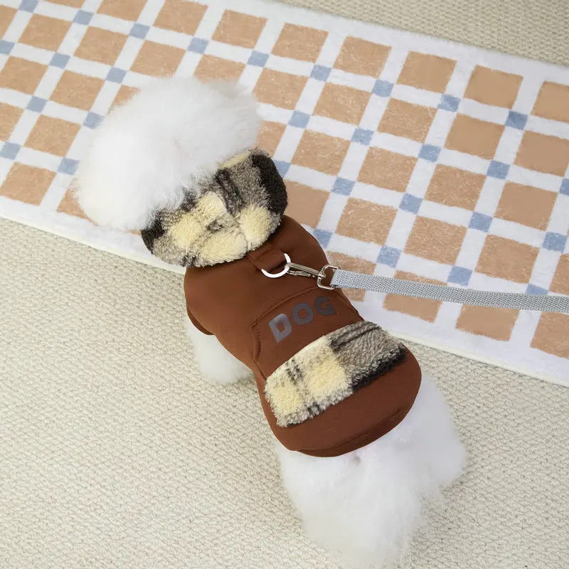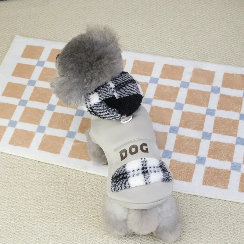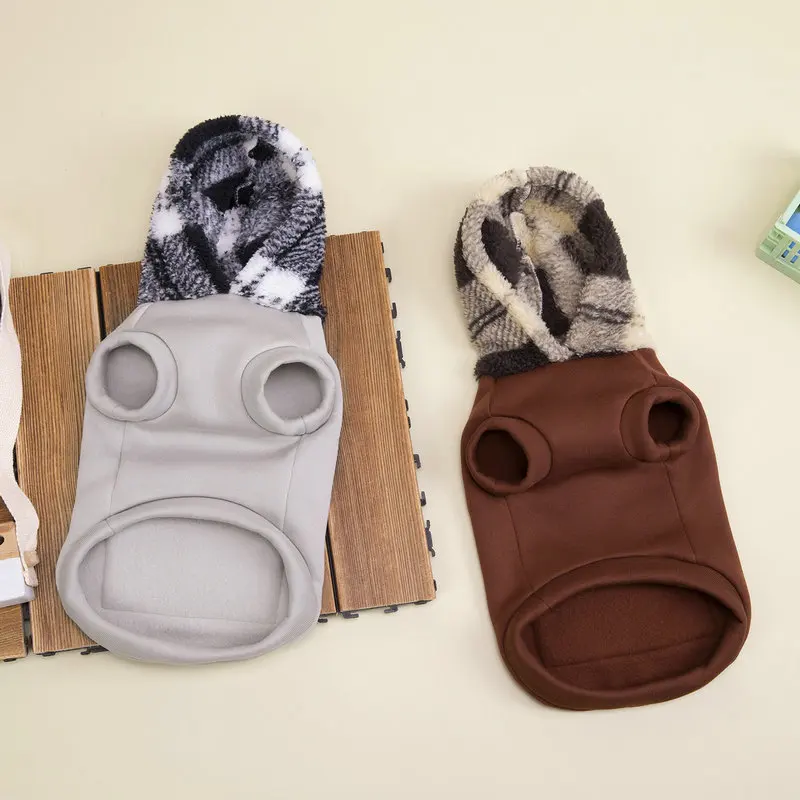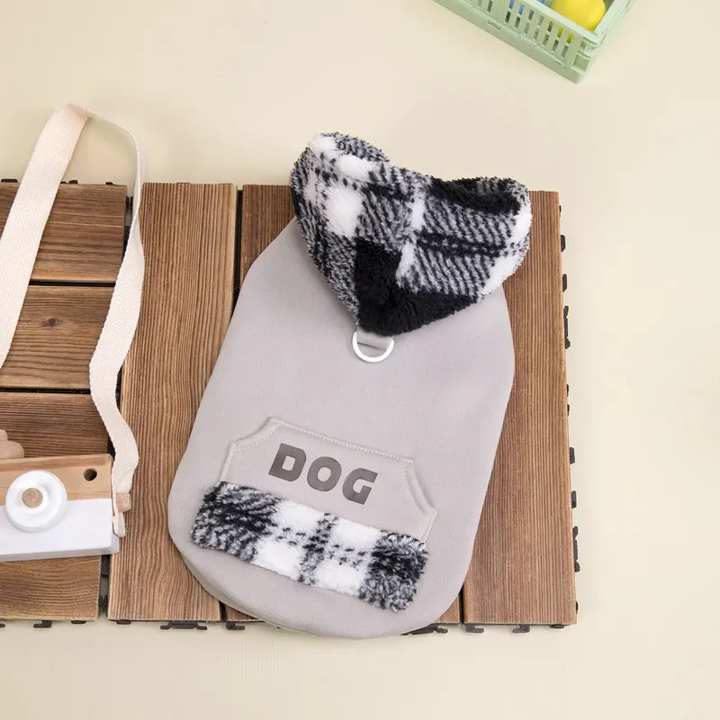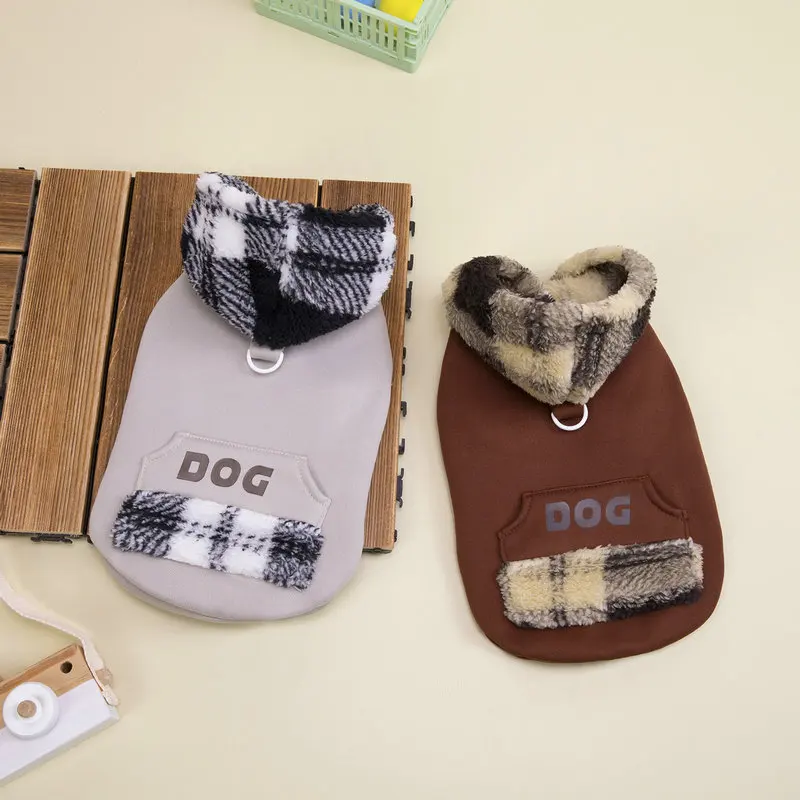 Otoño e Invierno mascota a cuadros bolsillo Sudadera con capucha abrigo para perro abrigo de peluche cálido ropa para perros pequeños ropa para cachorros