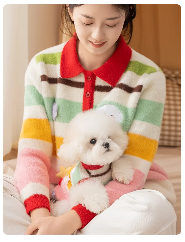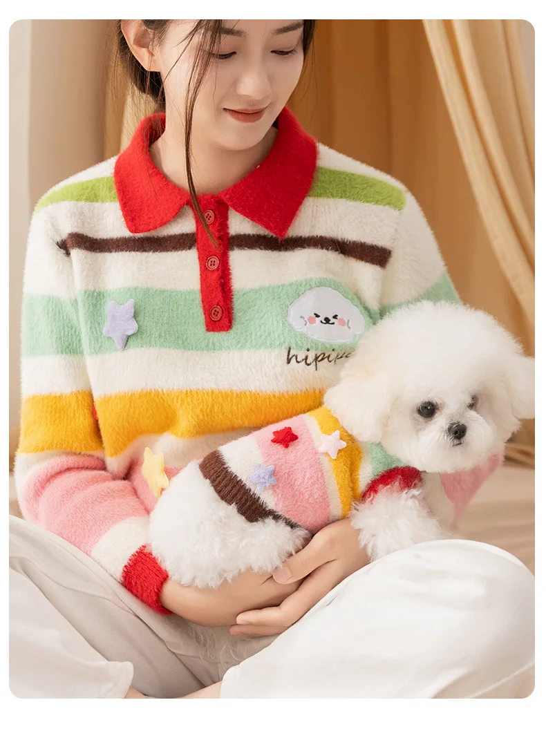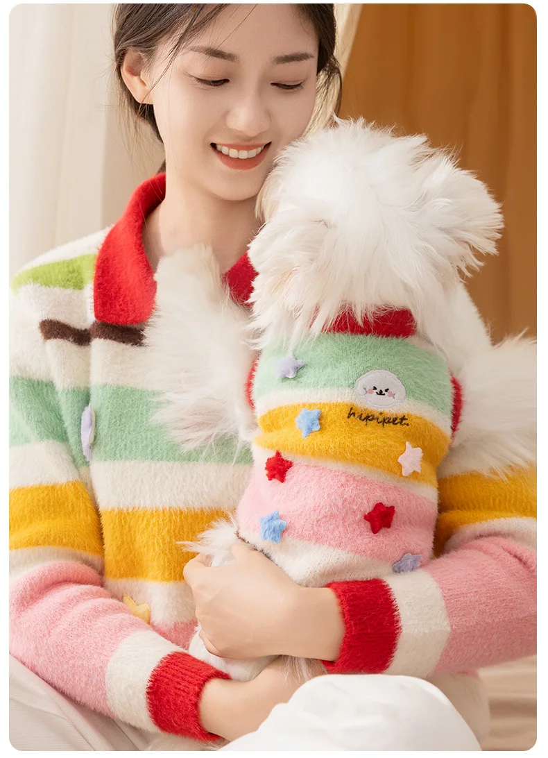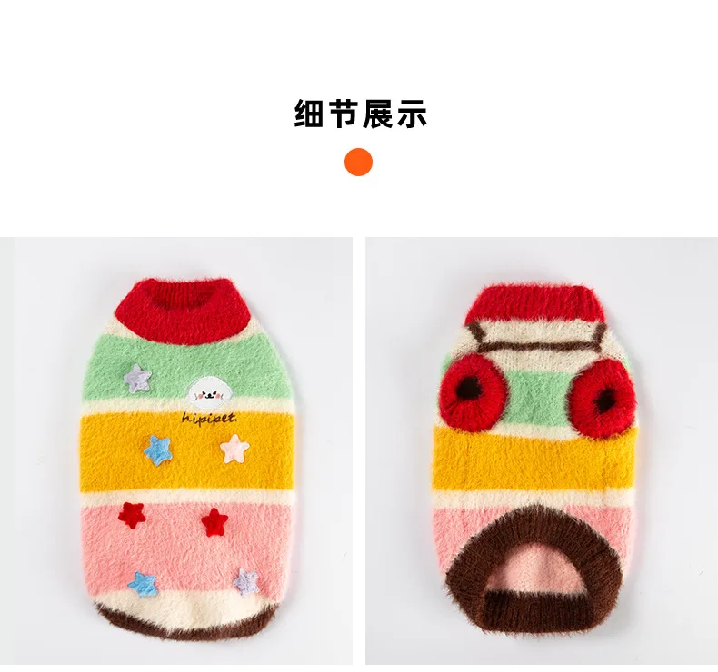 Otoño e Invierno mascota dibujos animados estrella raya suéter cálido terciopelo ropa de hogar abrigo de gato ropa de cachorro para perros pequeños - imagen 5