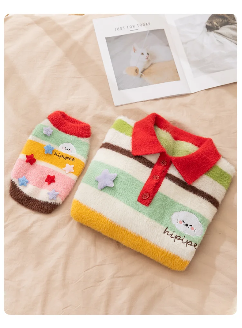 Otoño e Invierno mascota dibujos animados estrella raya suéter cálido terciopelo ropa de hogar abrigo de gato ropa de cachorro para perros pequeños - imagen 1