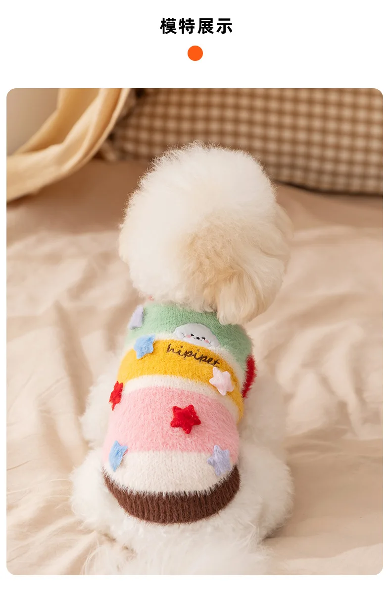 Otoño e Invierno mascota dibujos animados estrella raya suéter cálido terciopelo ropa de hogar abrigo de gato ropa de cachorro para perros pequeños - imagen 2