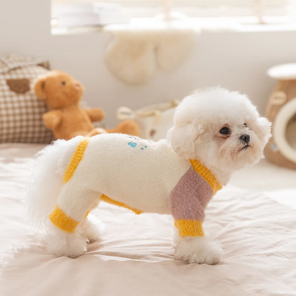 Otoño e Invierno mascota de felpa suéter cálido de cuatro patas mono para mascotas gato ropa para perros pequeños y medianos ropa para cachorros - imagen 1