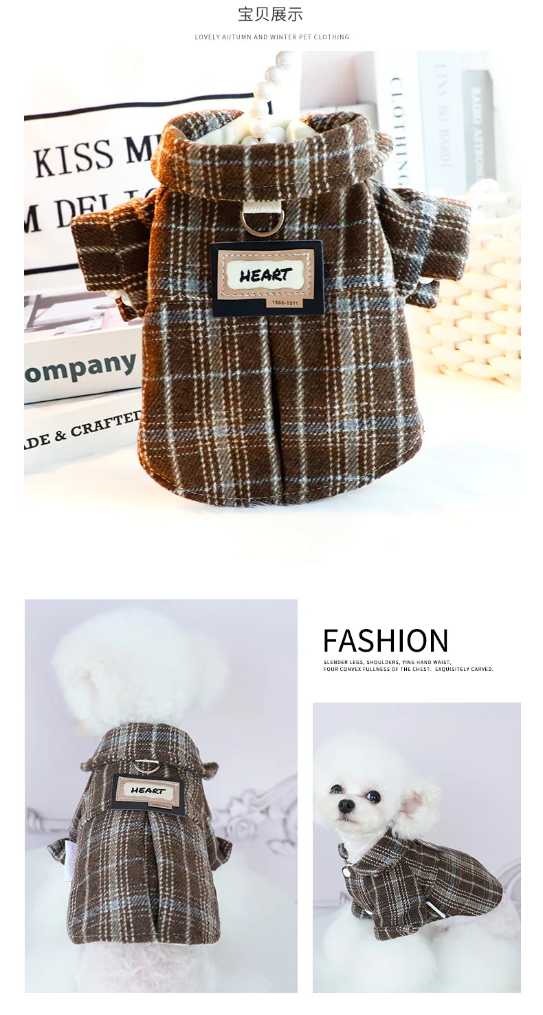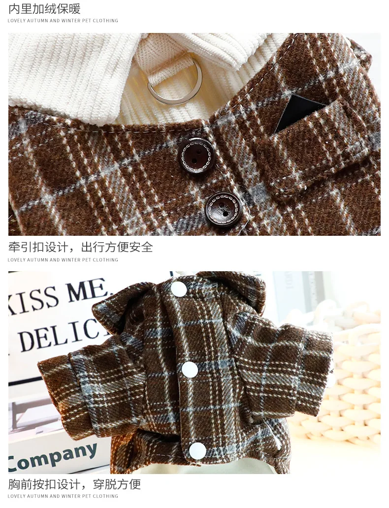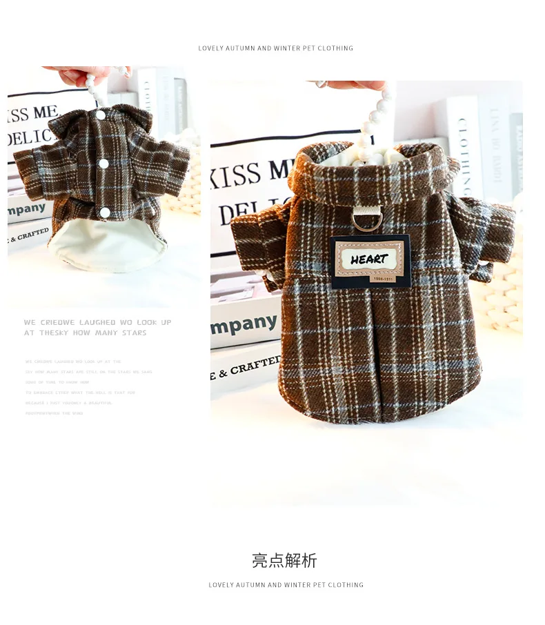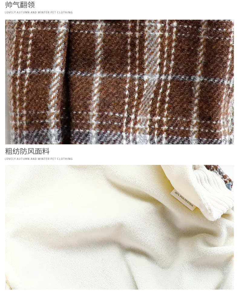 Otoño Invierno nuevo bonito abrigo de algodón de cuatro patas a cuadros ropa de exterior cálida y cómoda para perros pequeños