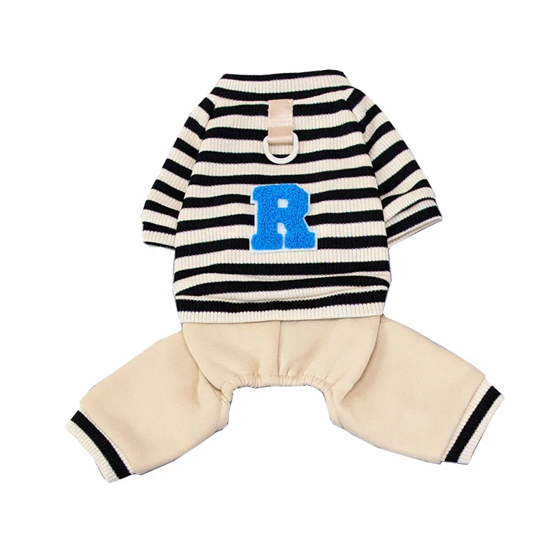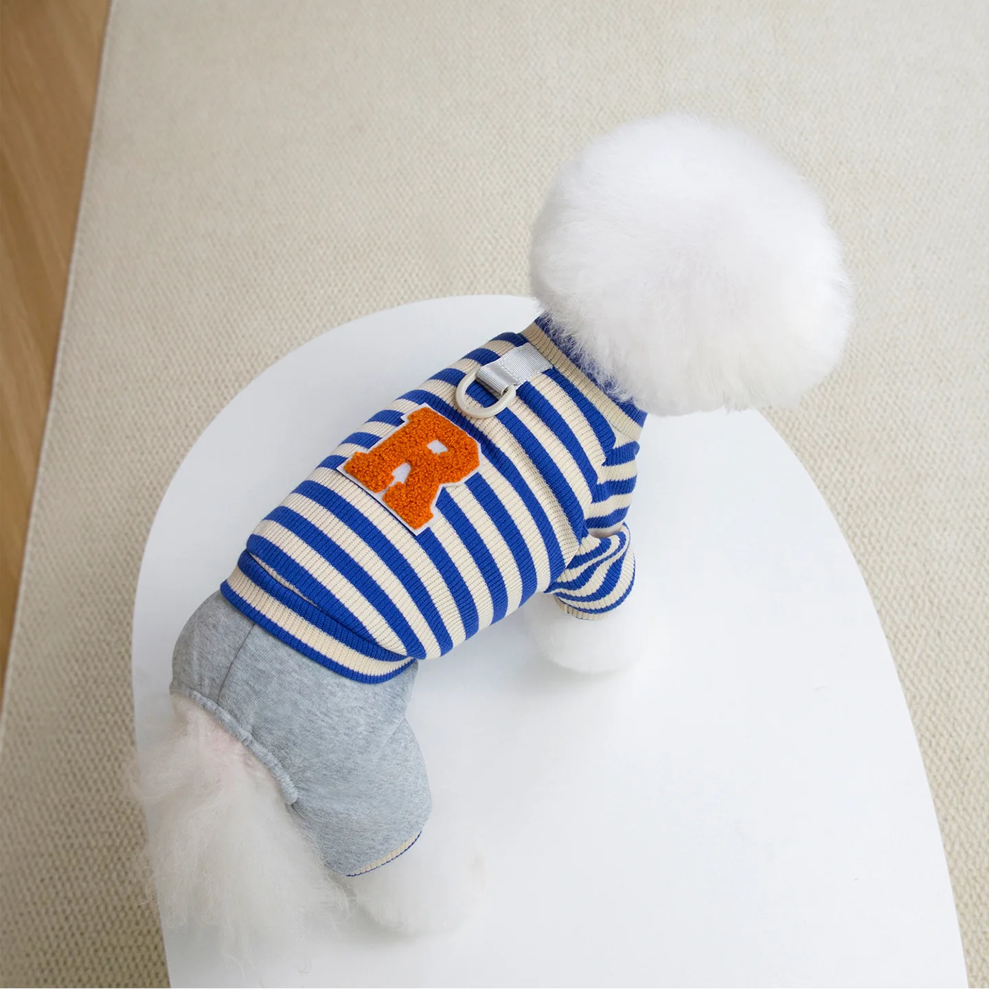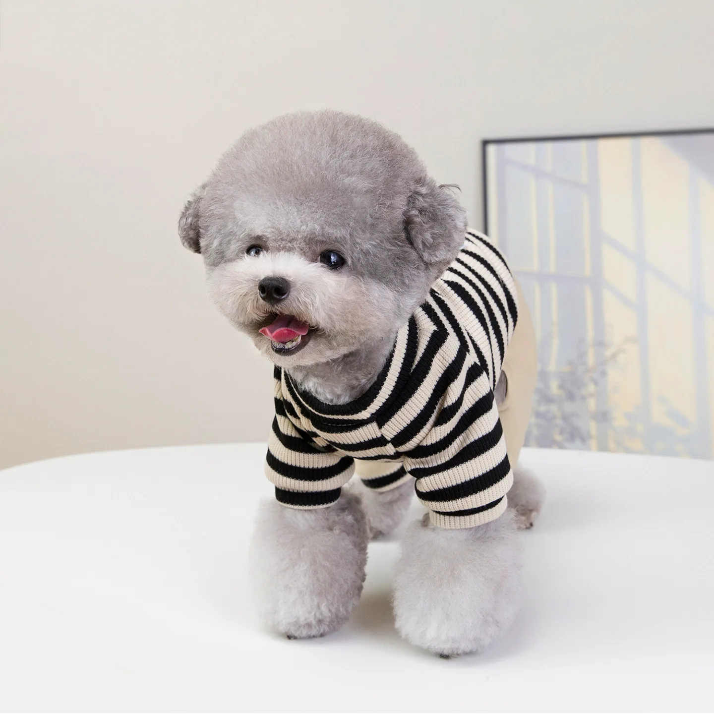 Otoño e Invierno nuevo mono informal a rayas pieza fina empalmado camisa Base de cuatro patas para perros pequeños y medianos
