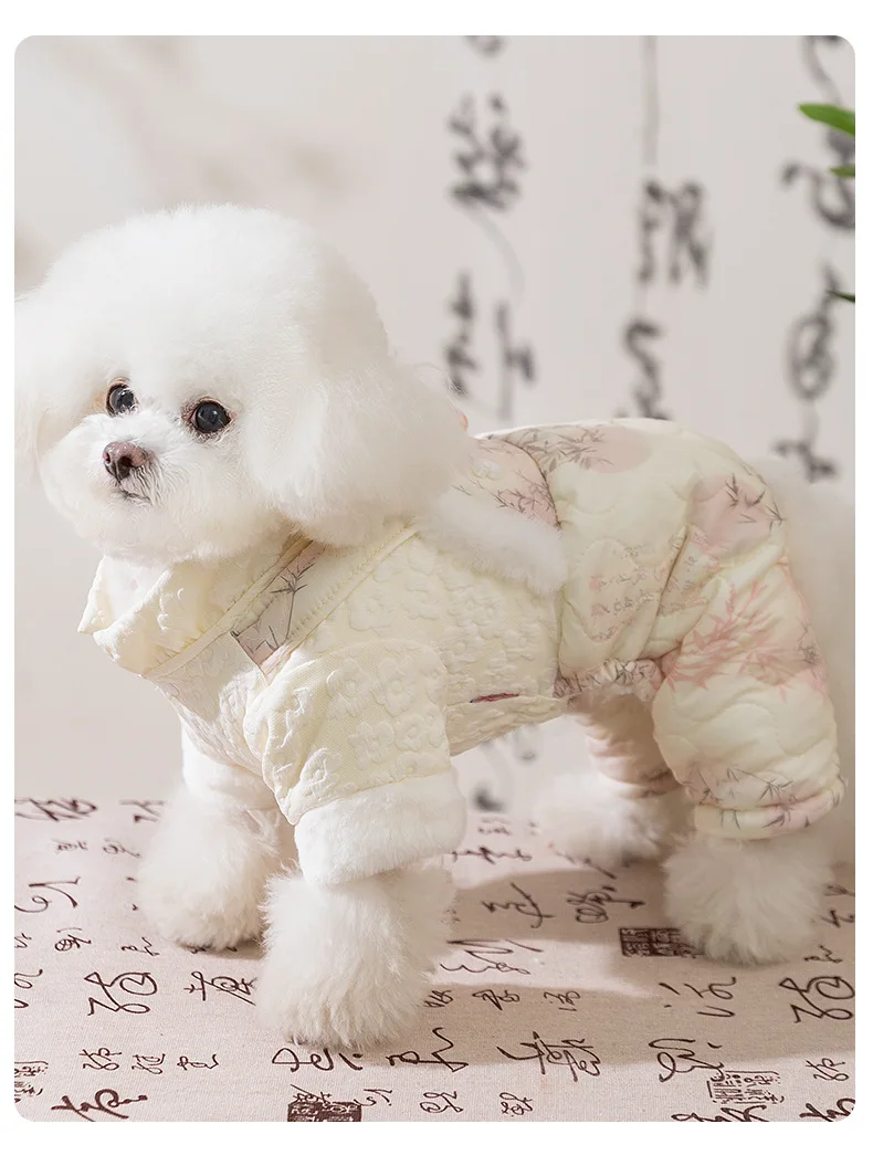 Otoño Invierno perro Año nuevo mono Floral estilo chino monos cuatro patas ropa de algodón gato y ropa para cachorros - imagen 5
