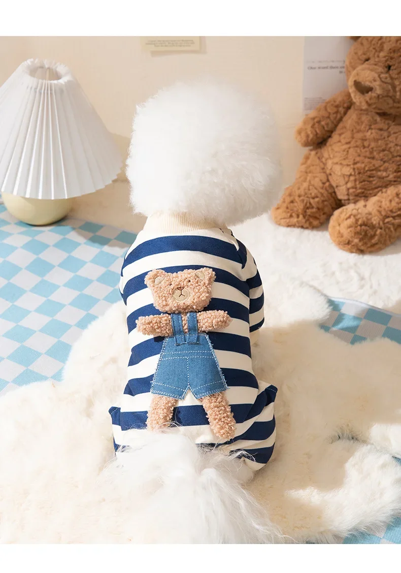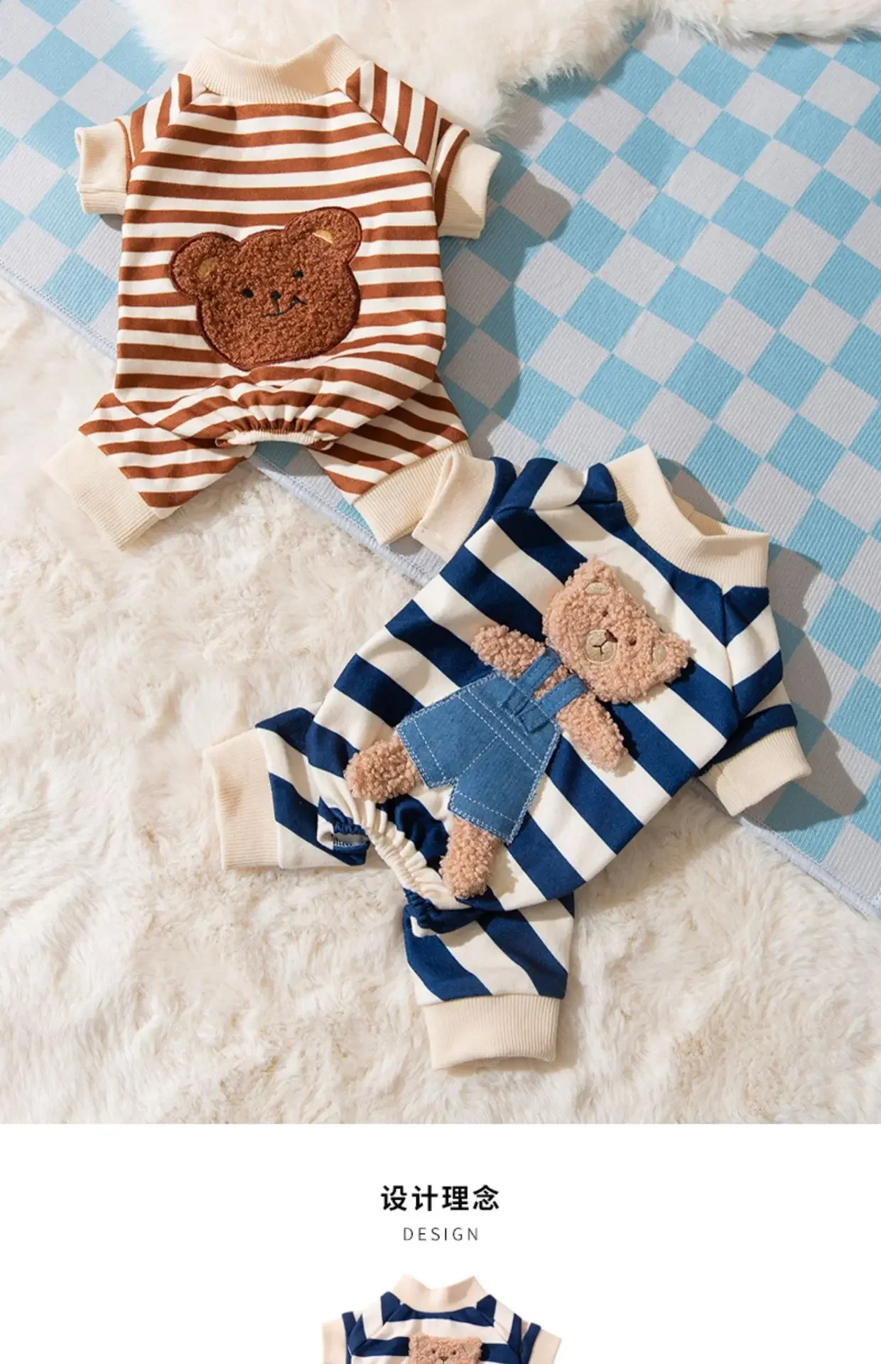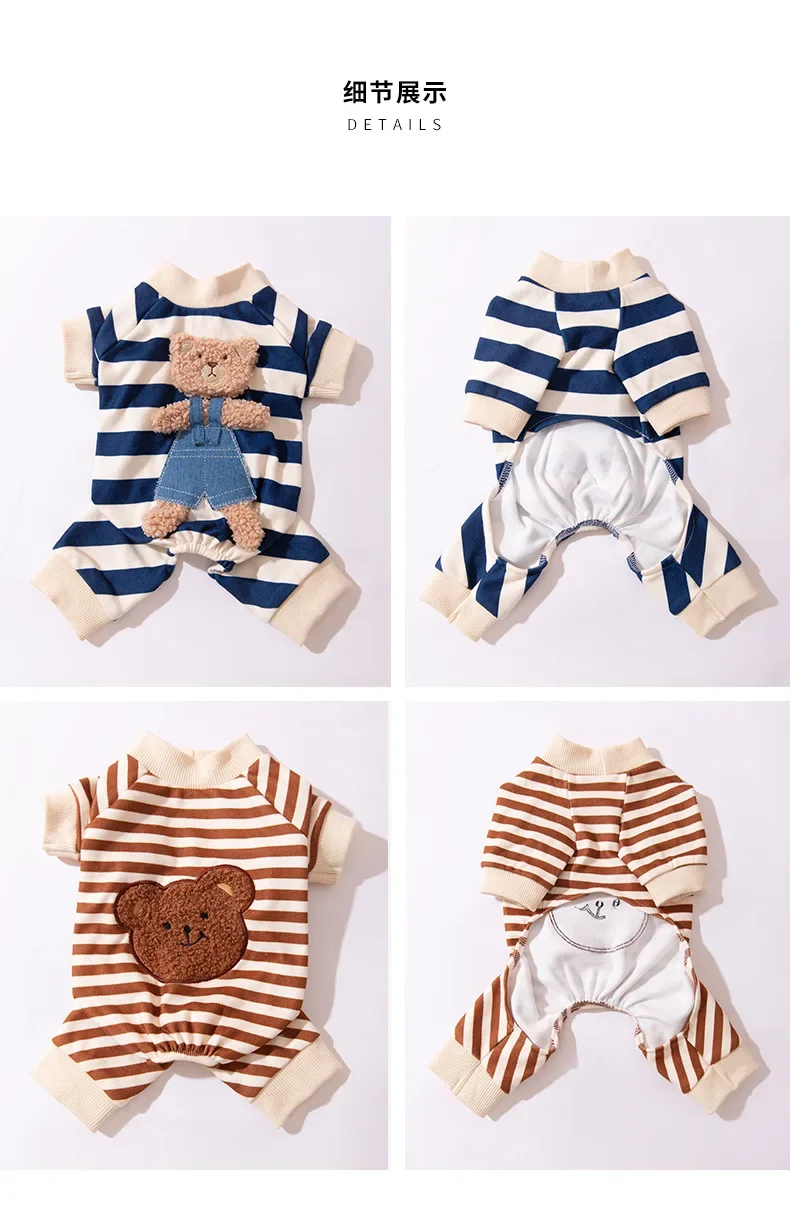Otoño e Invierno perro lindo oso rayas cuatro patas ropa para el hogar gato hogar mascota cuatro patas aire acondicionado ropa cachorro - imagen 4