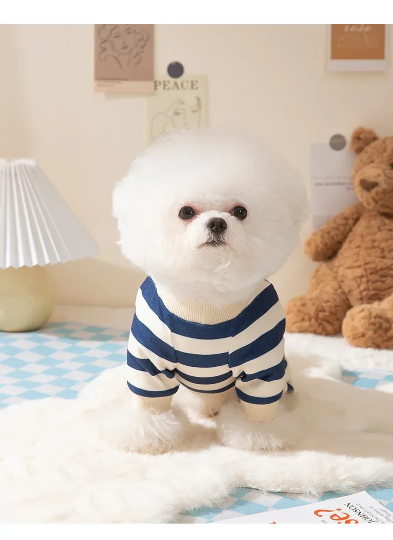 Otoño e Invierno perro lindo oso rayas cuatro patas ropa para el hogar gato hogar mascota cuatro patas aire acondicionado ropa cachorro