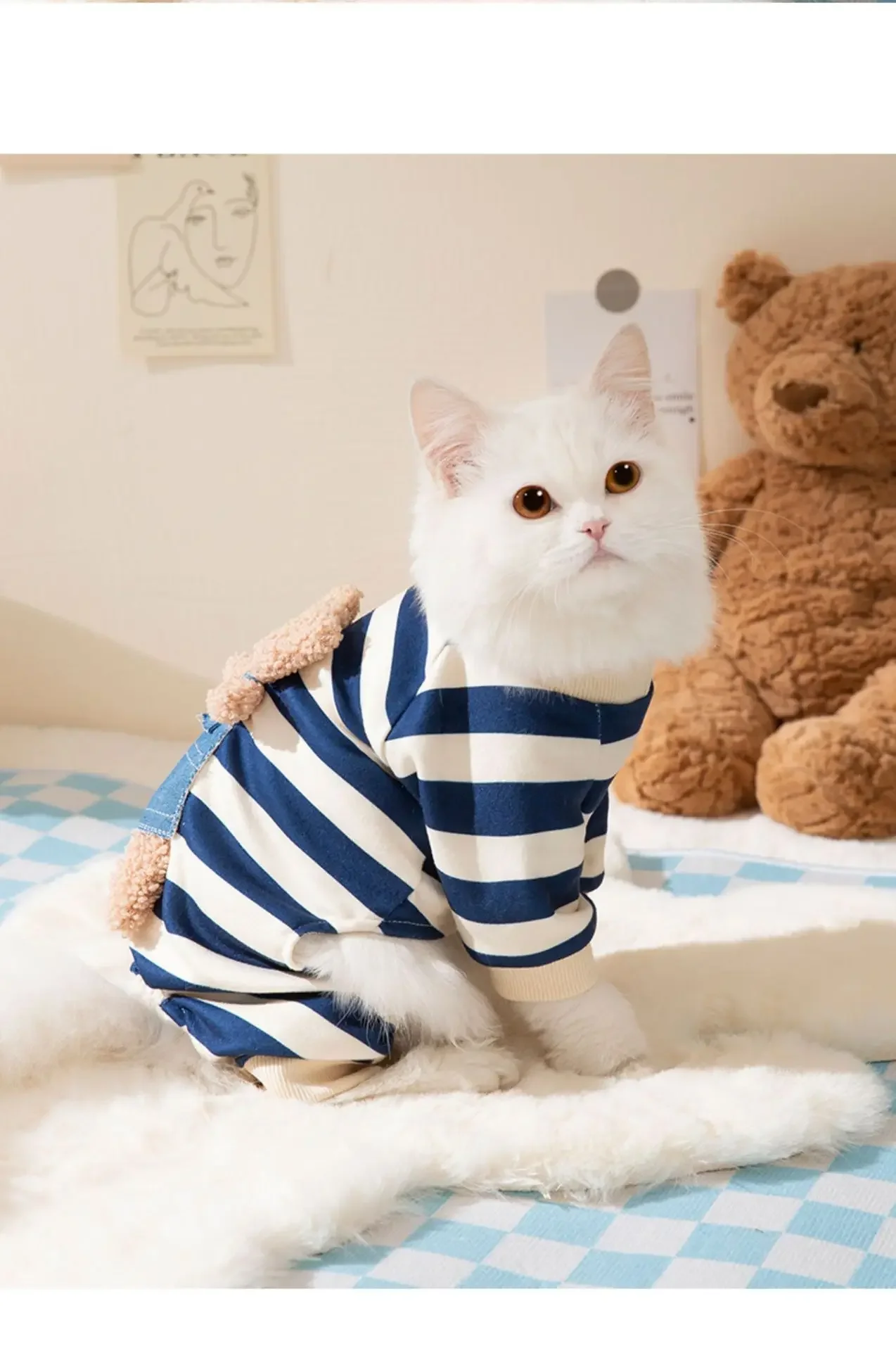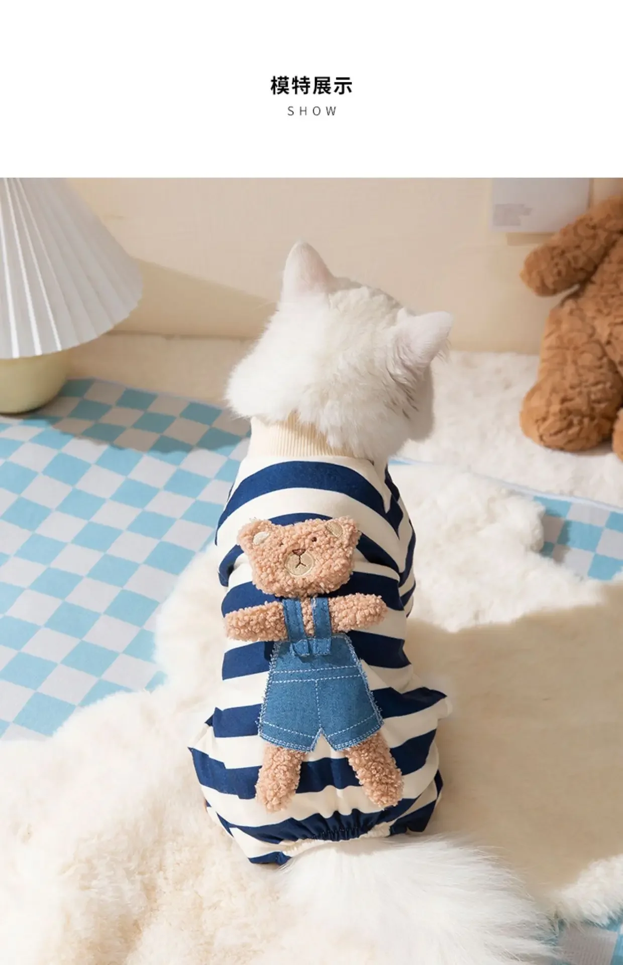 Otoño e Invierno perro lindo oso rayas cuatro patas ropa para el hogar gato hogar mascota cuatro patas aire acondicionado ropa cachorro - imagen 5