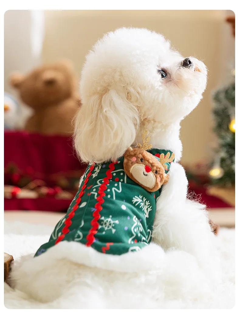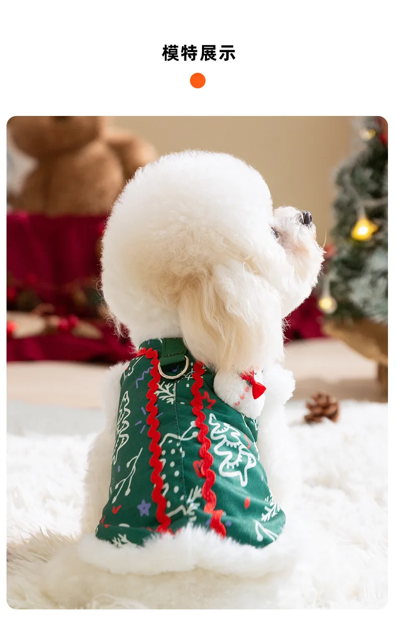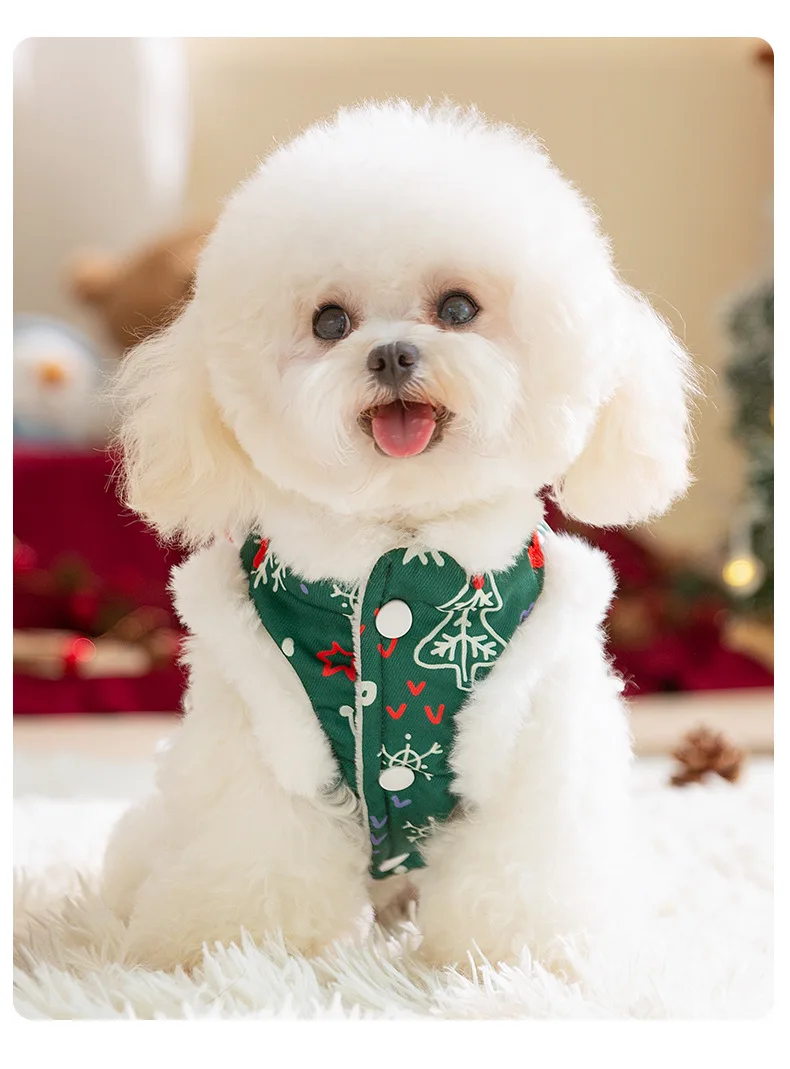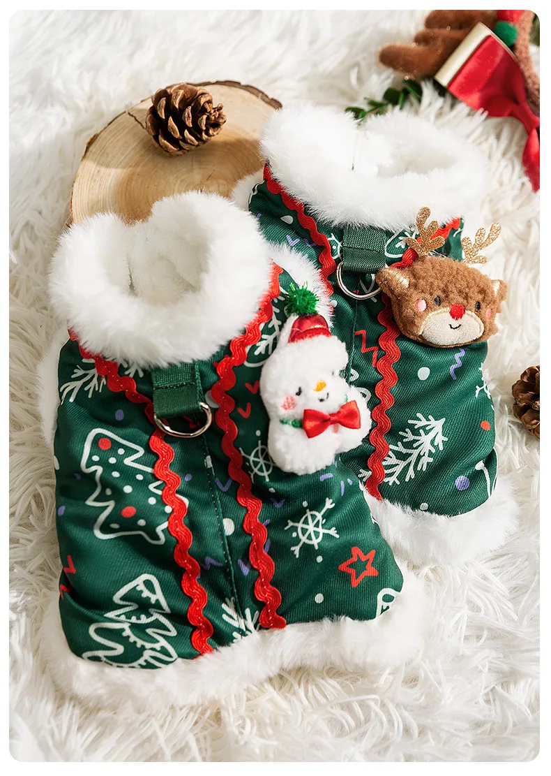 Otoño e Invierno perro Reno broche Navidad muñeco de nieve Cuello de piel abrigo chaleco gato cálido vacaciones oso de peluche abrigo para mascotas ropa para cachorros - imagen 5