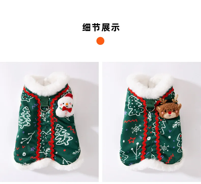 Otoño e Invierno perro Reno broche Navidad muñeco de nieve Cuello de piel abrigo chaleco gato cálido vacaciones oso de peluche abrigo para mascotas ropa para cachorros - imagen 2