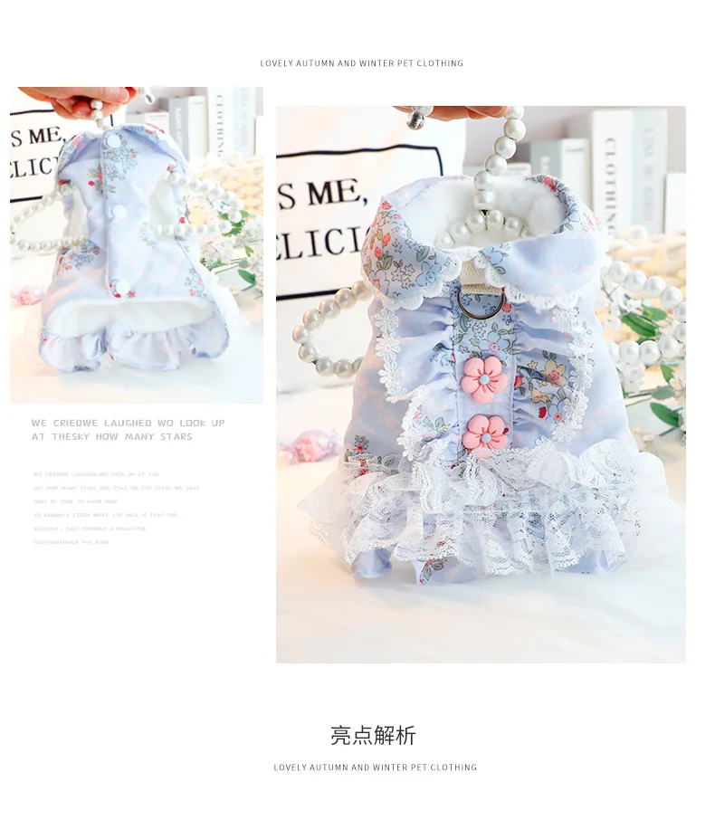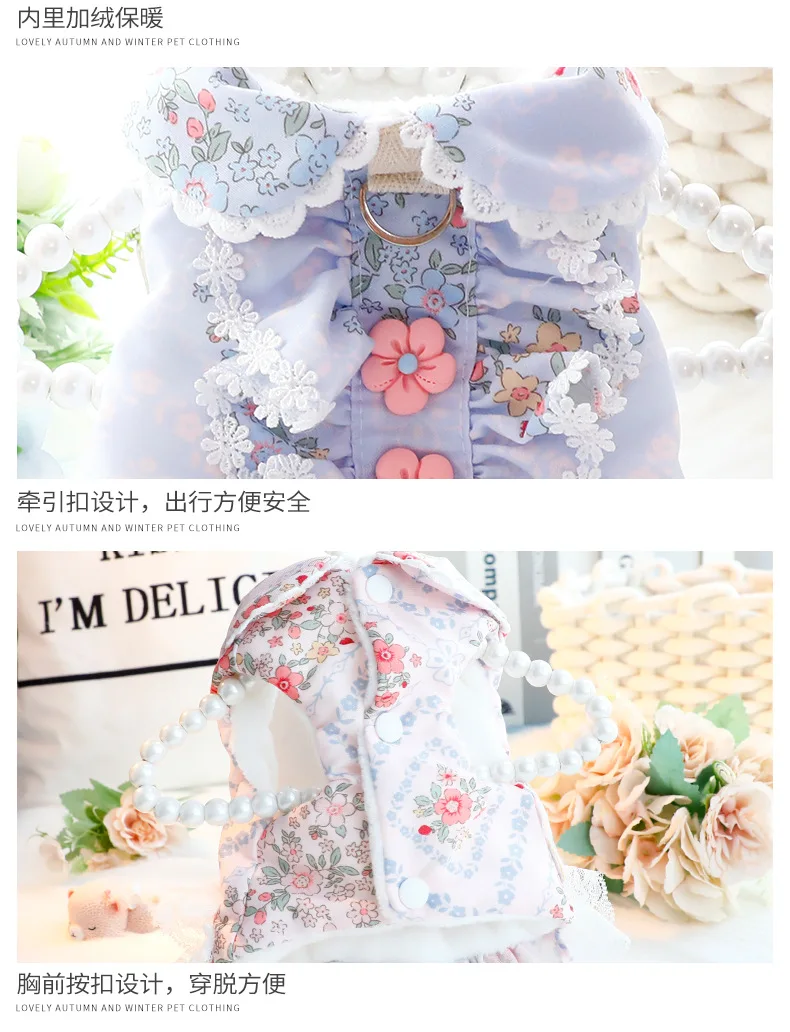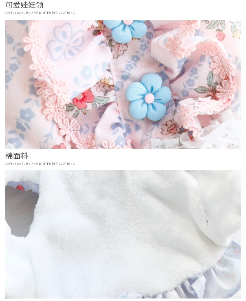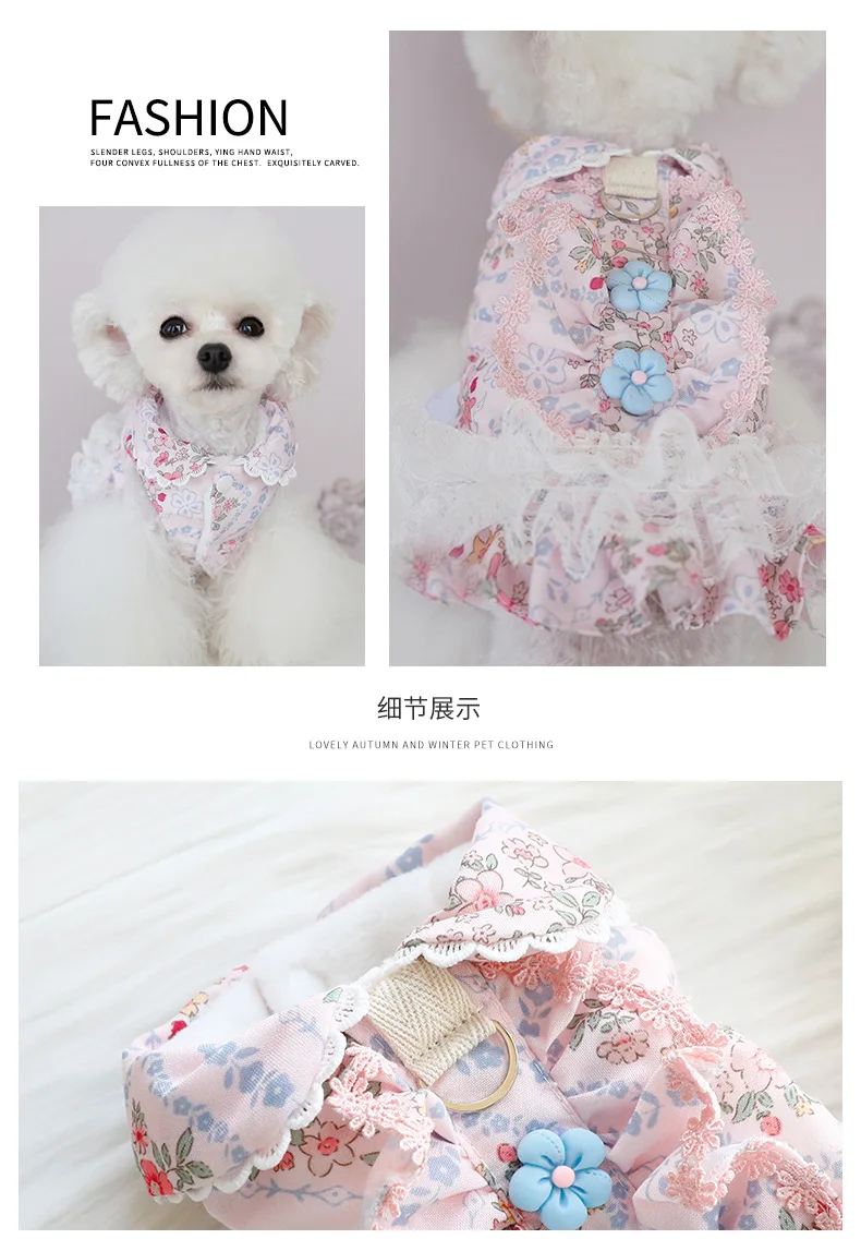 Otoño Invierno perro vestido de princesa abrigo vestido de novia de encaje Floral ropa cálida de algodón para cachorros para perros pequeños Chihuahua, Schnauzer