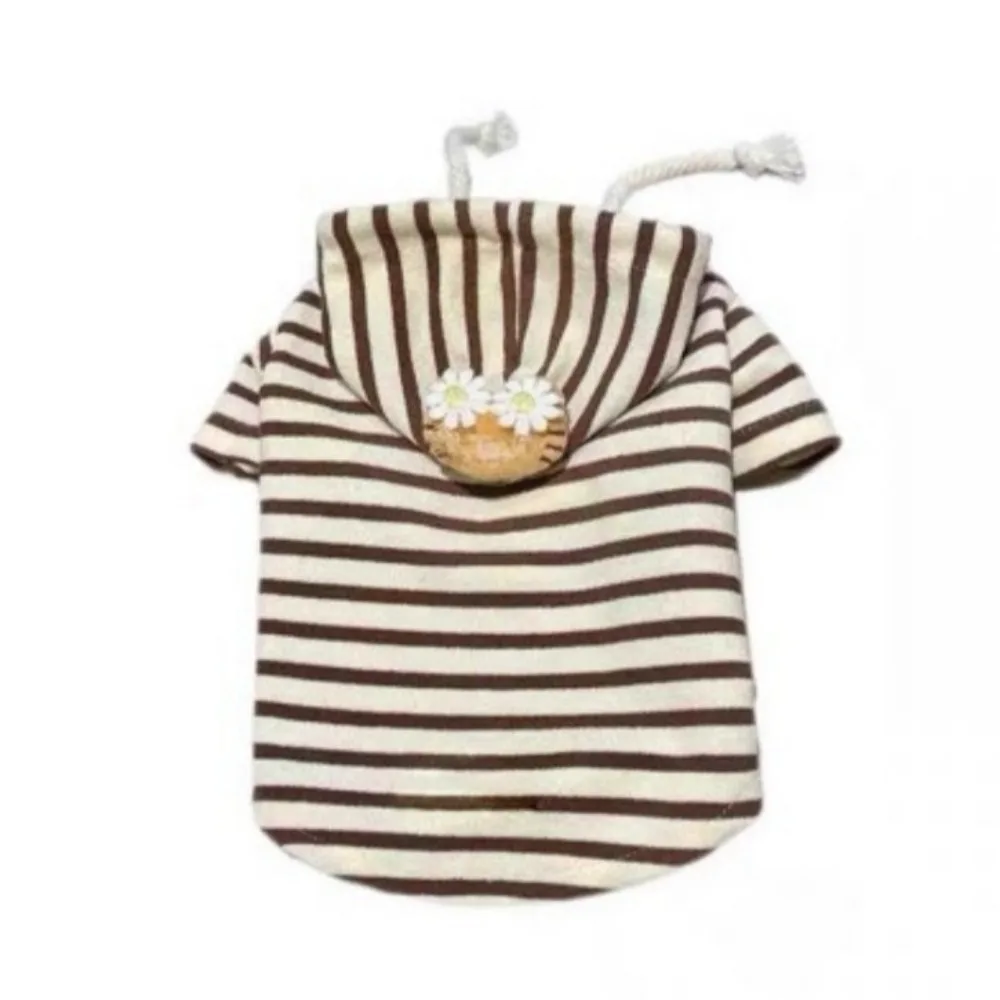 Otoño Invierno Pet Sudadera con capucha cálida Abrigo lindo a rayas para perros y cachorros pequeños | Ropa para clima frío estilo Teddy