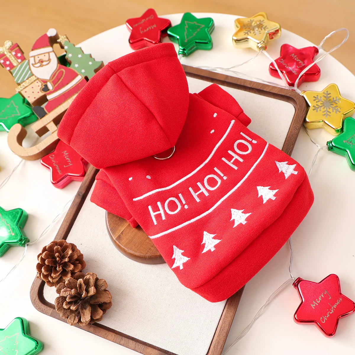 Otoño/Invierno Sudadera con capucha para mascotas Abrigo bordado de Navidad Lindo gatito Casual Sudadera con capucha de Navidad Ropa para perros pequeños